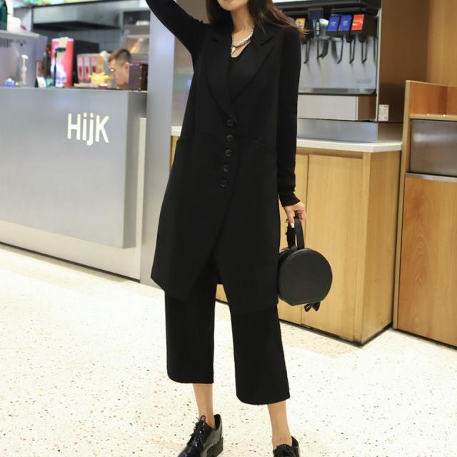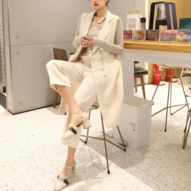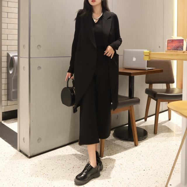 ロングジレとクロップドパンツのスーツセット