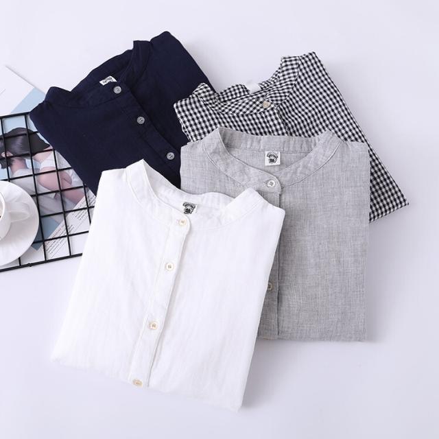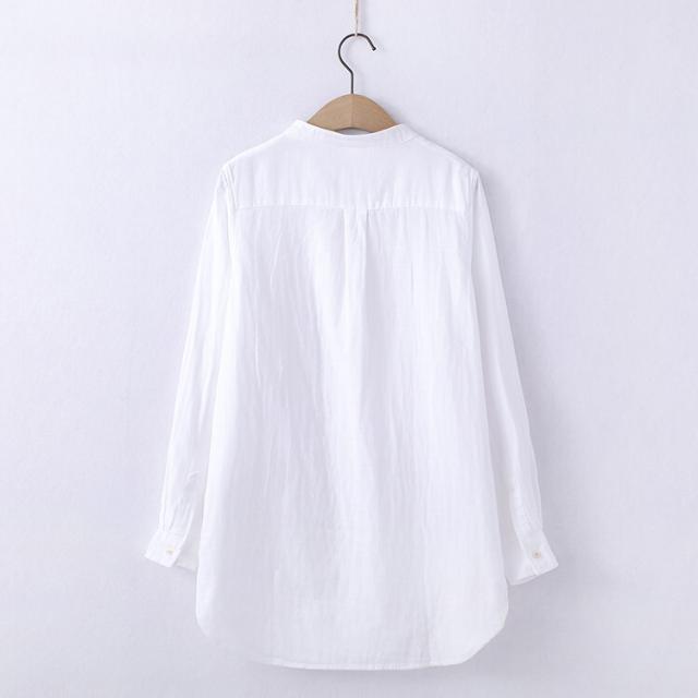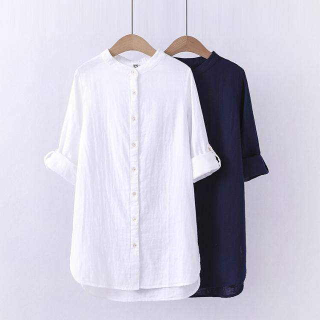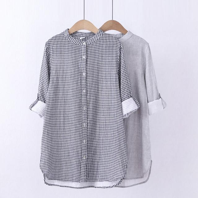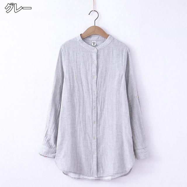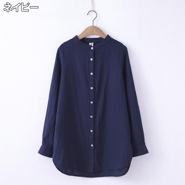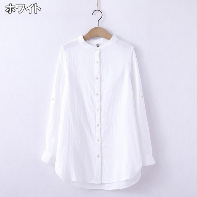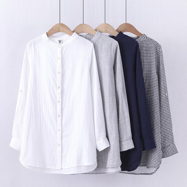 シャツ レディース トップス ブラウス ノーカラーシャツ S M L XL ホワイト 白 グレー 灰色 ネイビー 紺 チェック ギンガムチェック 無地 大人カラー くすみカラー 春 秋 長袖 ノーカラー フロントボタン 前開き ロング丈 ミドル丈 ストレート ルーズ ゆったり ゆる ママ フェミニン ナチュラル カジュアル きれいめ きれカジ 大人 大人可愛い こなれ感 ぬけ感 休日 お出かけ 定番 万能 着回し 王道 シンプル ベーシック 存在感 主役級 通学 学生 韓国 オルチャン きちんと感 清潔