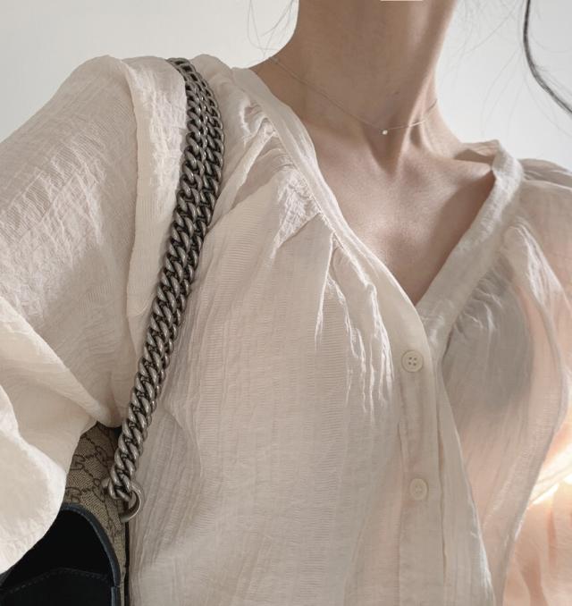 サラッと透け感ある素材感で長いシーズン着こなせそう♪