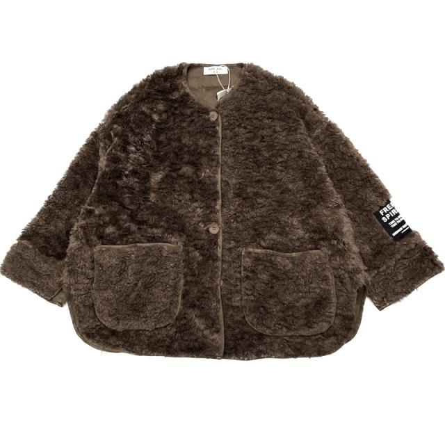 ファーブルゾン レディース アウター ブルゾン ジャケット コート ボア ファー ファーブルゾン ボアブルゾン ふわふわ もこもこ ワンサイズ フリーサイズ ブラック 黒 グリーン 緑 グレー 灰色 ブラウン 茶色 ベージュ 大人カラー くすみカラー 冬 防寒 あったか ゆったり