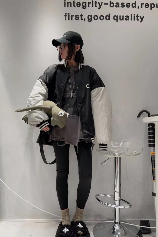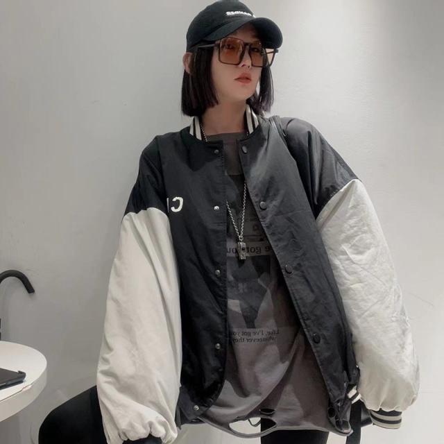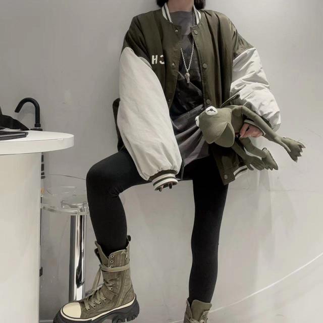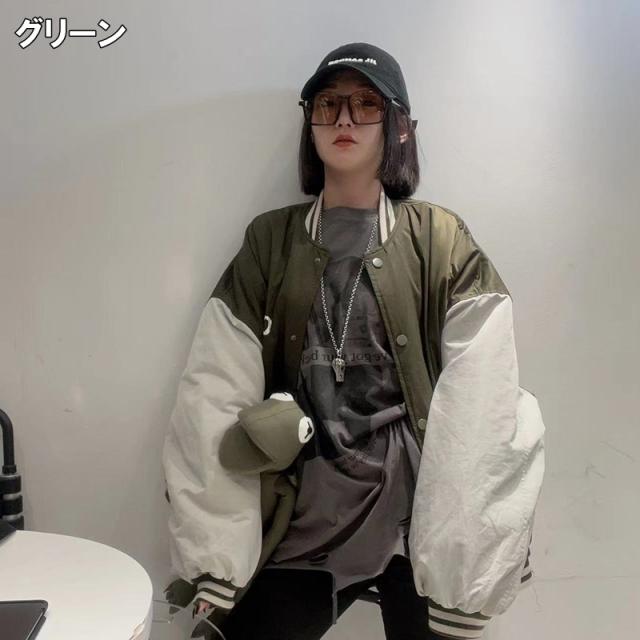 スタジャン レディース アウター ジャケット ブルゾン ジャンパー ワンサイズ フリーサイズ ブラック 黒 グリーン 緑 バイカラー ライン 大人カラー くすみカラー 秋カラー 無地 バックロゴ バックシャン ロゴ プリント 長袖 ボリューム袖 ランタンスリーブ ラグラン ドロップショルダー ルーズ ゆったり ゆる ストレート 体型カバー 着やせ ショート丈 ミドル丈 カジュアル きれカジ ストリート ストカジ カレッジ レトロ 存在感 主役級 こなれ感 ぬけ感 休日 お出かけ ボーイッシュ メンズライク