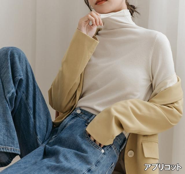 ニット レディース トップス セーター プルオーバー ニットトップス S M L XL アプリコット ブラウン 茶色 ブラック 黒 大人カラー くすみカラー ニュアンスカラー 無地 秋 冬 長袖 ハイネック タートルネック ショート丈 ミドル丈 ぴったり スリム 細身 ママ フェミニン