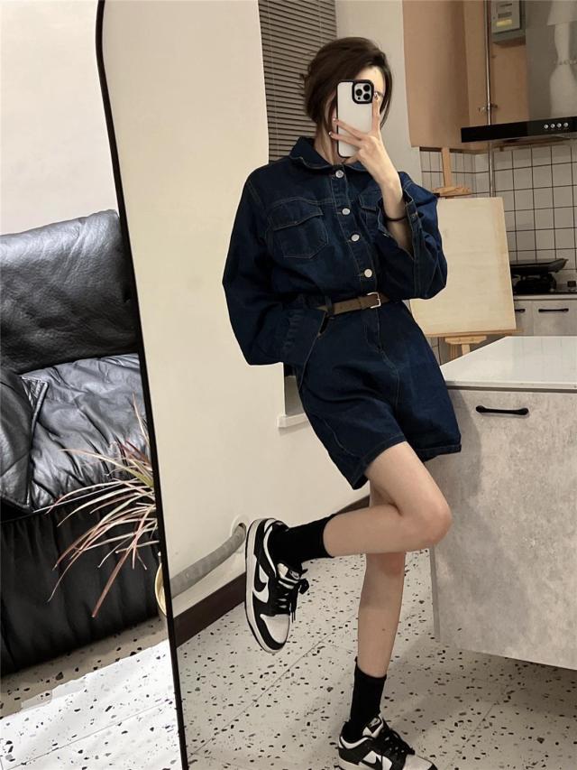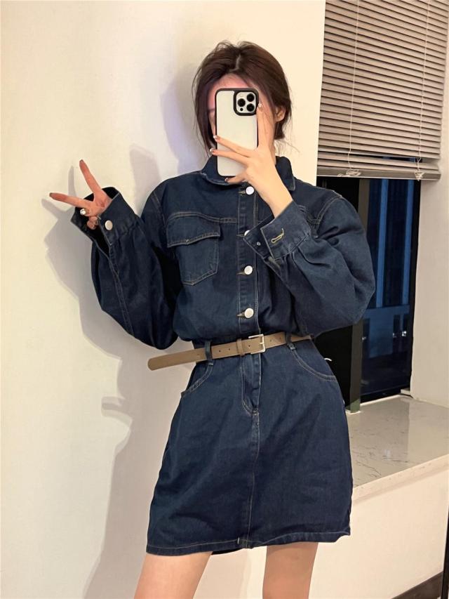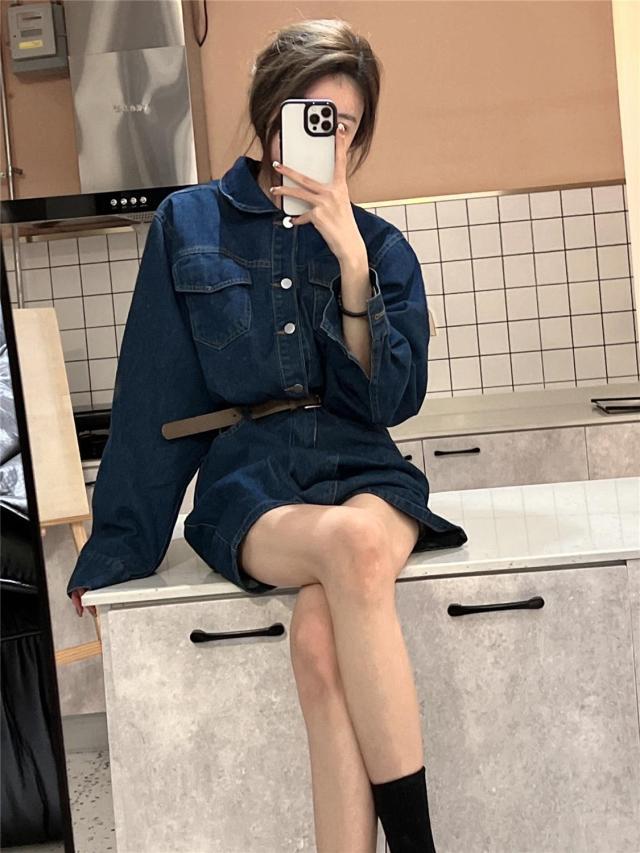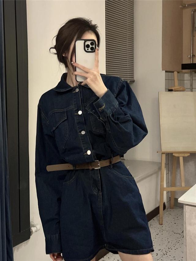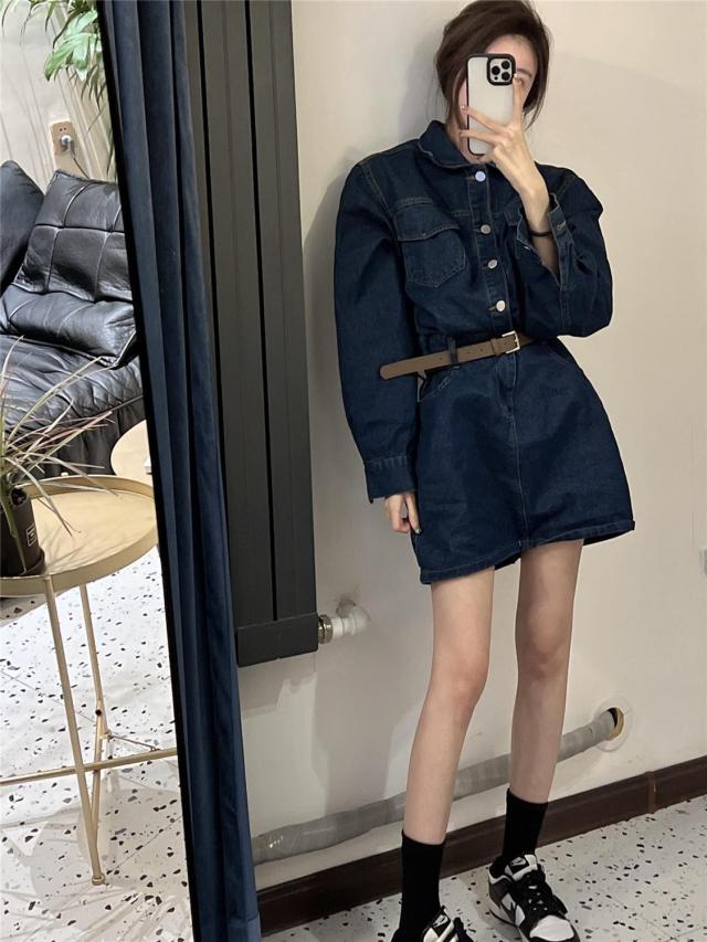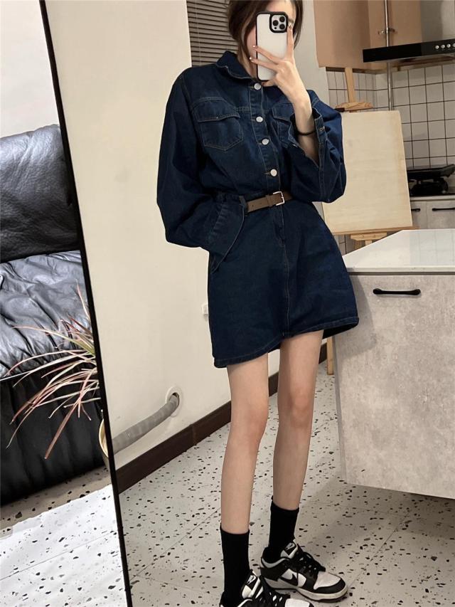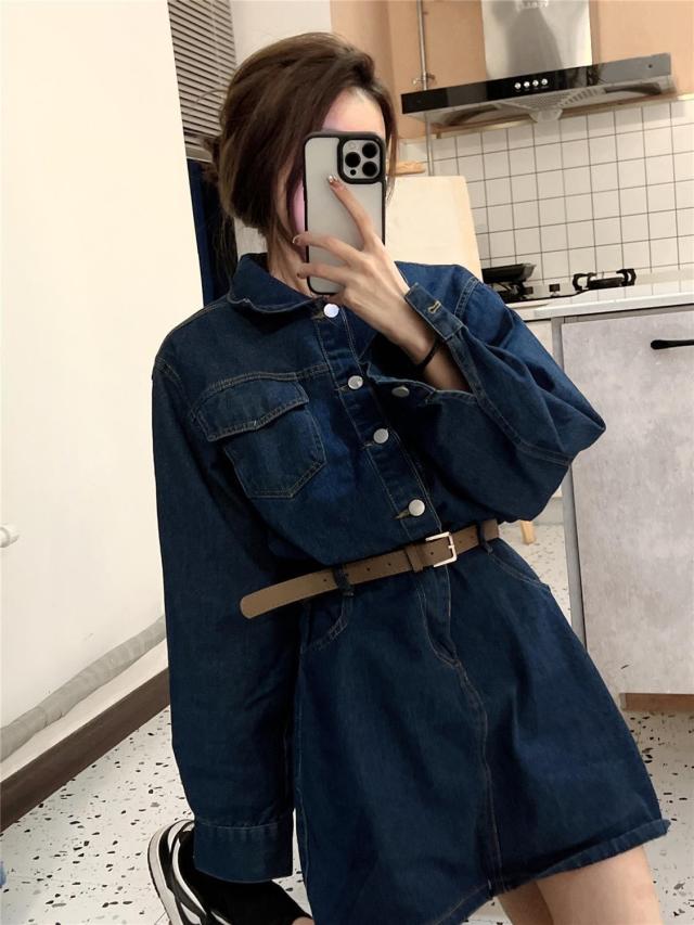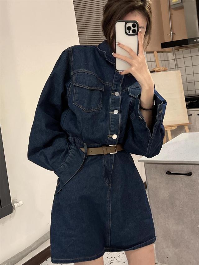ワンピース レディース デニム ミニワンピース Aライン セミフレア ショート丈 長袖 袖あり ブルーデニム ボタン かわいい シンプル カジュアル おしゃれ お洒落 かっこいい こなれ感 ラフ ガーリー 抜け感 M L ブルー 青 無地 春 秋 10代 20代 30代 学生 通学 デート お出かけ 女子会 休日 イベント 旅行 モテ 美脚 脚長 プレゼント ギフト 定番 着回し 普段使い 重ね着 韓国 オルチャン 楽ちん ファッション コーデ スタイル