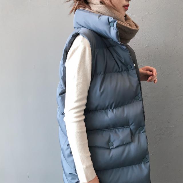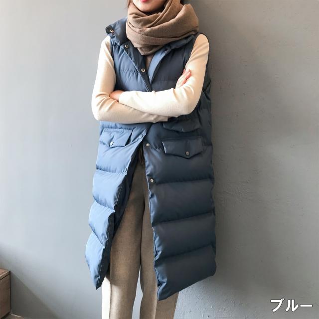 ベスト レディース トップス ダウンベスト M L ブラック 黒 ブルー 青 アプリコット 大人カラー くすみカラー 秋カラー ニュアンスカラー 無地 ルーズ ゆったり ゆる ロング丈 ロング カジュアル ナチュラル きれいめ きれカジ 大人 大人可愛い お出かけ 休日 着回し 定番 万能 王道 シンプル ベーシック 存在感 主役級 学生 通学 韓国 オルチャン 体型カバー 着やせ ママ マニッシュ メンズライク ボーイッシュ 防寒 あったか 重ね着 レイヤード アウトドア 前開き フロントボタン 厚手