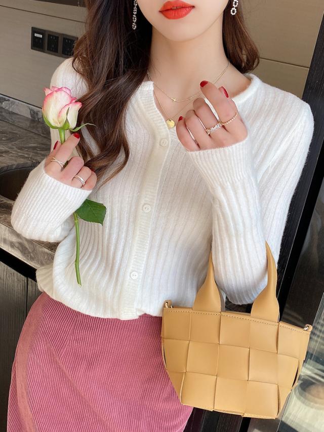 トップス レディース セーター ニット 長袖 カーディガン風 Vネック ラウンドネック スリットネック リブニット ボタン 大人可愛い きれいめ シンプル カジュアル 大人 上品 おしゃれ お洒落 かっこいい 大人女子 こなれ感 抜け感 ワンサイズ フリーサイズ ホワイト 白
