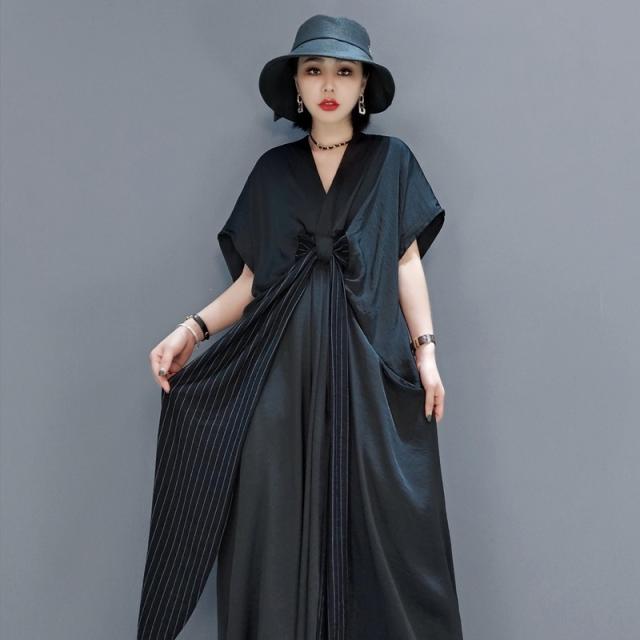 ワンピース ドレス ロング丈 レディース ロングワンピ マキシ丈 きれいめ 上品 エレガント 高級感 個性的 個性派 体型カバー 細見え 着痩せ オシャレ お洒落 かわいい 大人可愛い 20代 30代 40代 Aライン ストライプ 蛇柄 パーティー お呼ばれ Vネック スタイルアップ デコルテ 鎖骨 小顔 バック デザイン 二次会 披露宴 ふんわり 新作 2022 春 夏 華奢 アシンメトリー Vネック シック モード とろみ 半袖 ブラック 黒 モノクロ 普段使い 映え SNS 女子会 ショッピング