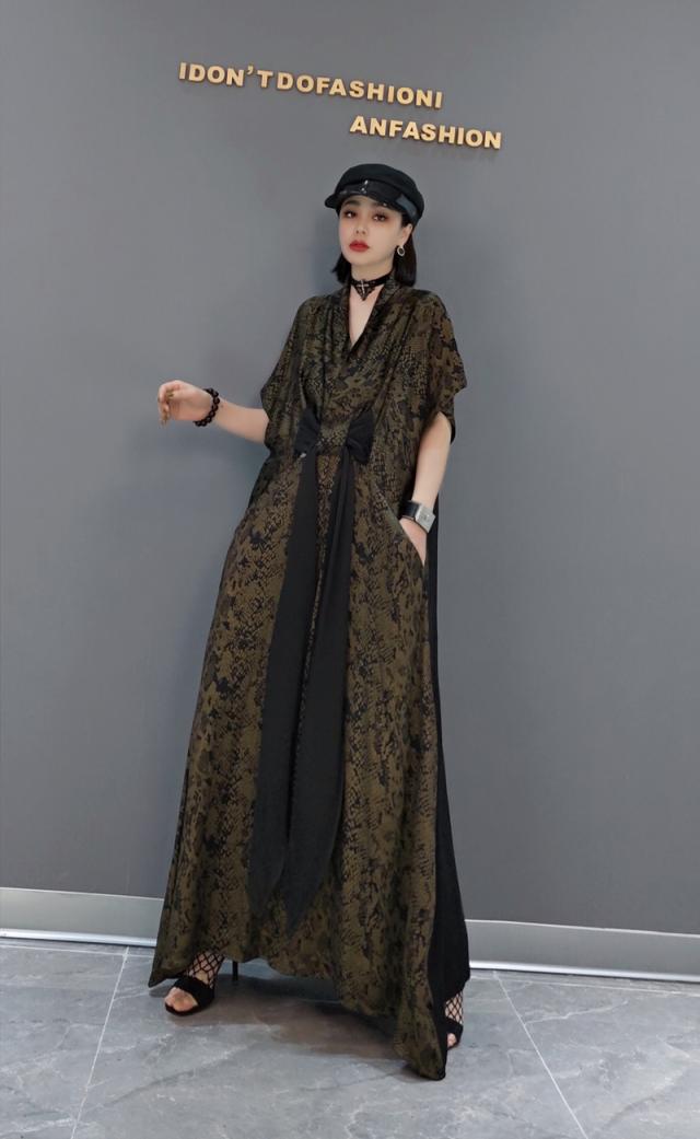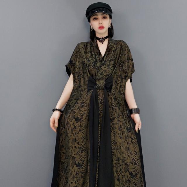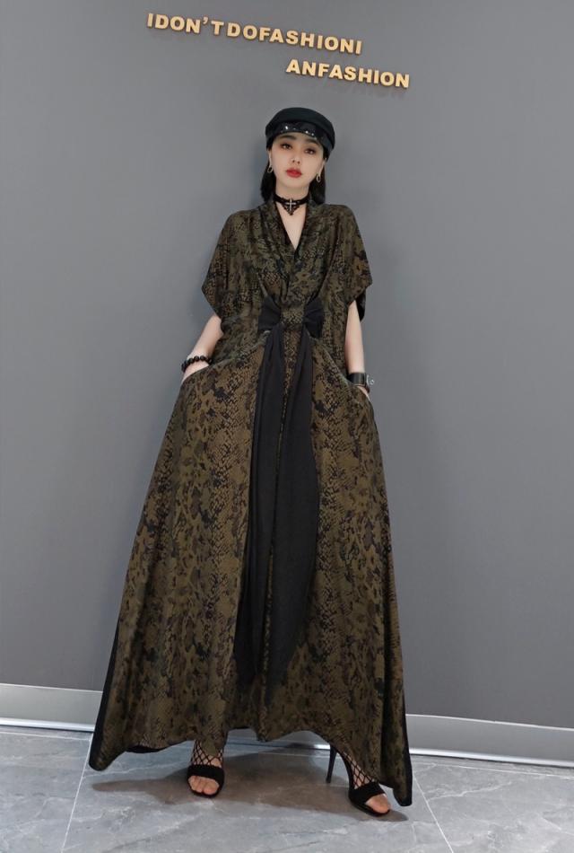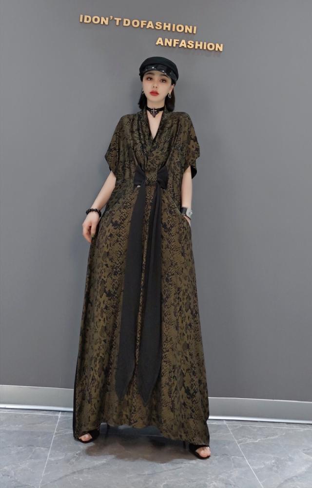ワンピース ドレス ロング丈 レディース ロングワンピ マキシ丈 きれいめ 上品 エレガント 高級感 個性的 個性派 体型カバー 細見え 着痩せ オシャレ お洒落 かわいい 大人可愛い 20代 30代 40代 Aライン ストライプ 蛇柄 パーティー お呼ばれ Vネック スタイルアップ