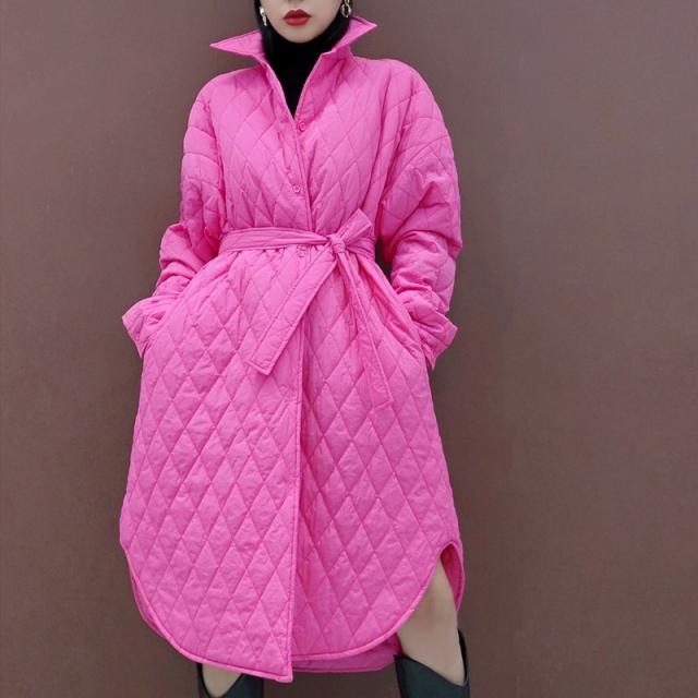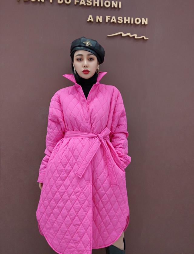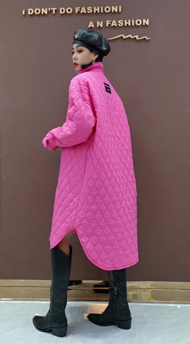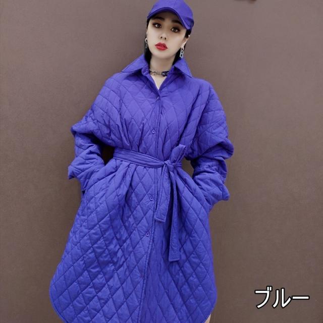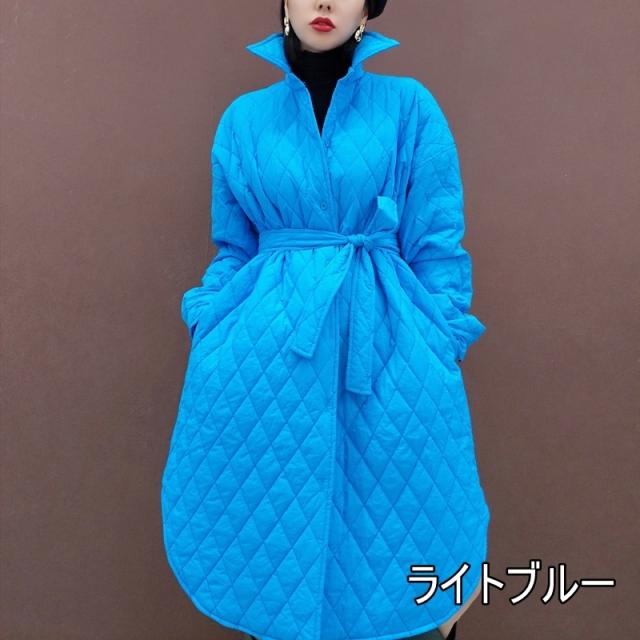 アウター キルティング コート 3色 レディース ジャケット 原色 ロング丈 カジュアル ラフ 長袖 ファスナー 暖かい あったか 防寒 個性的 個性派 オシャレ お洒落 かわいい 大人かわいい お出かけ 買い物 20代 30代 40代 ゆったり 大きめ 体型カバー 着痩せ 細見え 無地 ピンク ブルー 水色 蛍光 ハイネック ボリューム 新作 2022 冬 きれいめ 高級感 エレガント ウエストマーク リボン ベルト くびれ 襟付き スリット ドロップショルダー 映え SNS 女子会 主役 存在感