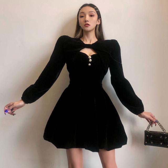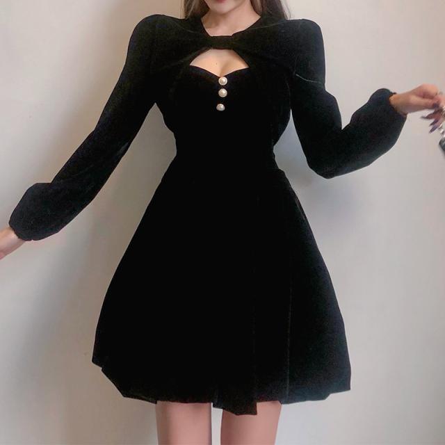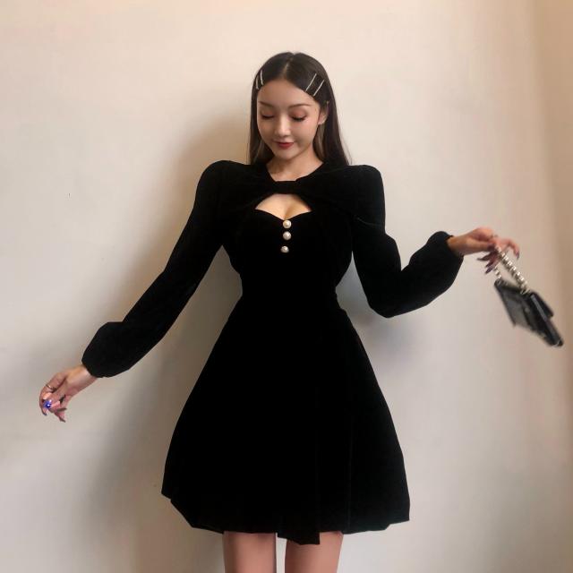 セットアップ ミニワンピース キャミソールワンピース キャミワンピ ショート丈アウター 長袖 ボレロ風 フレア Aライン パールボタン ベルベット ベロア 2点セット 黒 ブラック M L XL 無地 春 秋 冬 謝恩会 結婚式 二次会 披露宴 10代 20代 30代 デート お出かけ お呼ばれ 女子会 休日 パーティー イベント プレゼント ギフト モテ 美脚 脚長 韓国 オルチャン ファッション コーデ スタイル