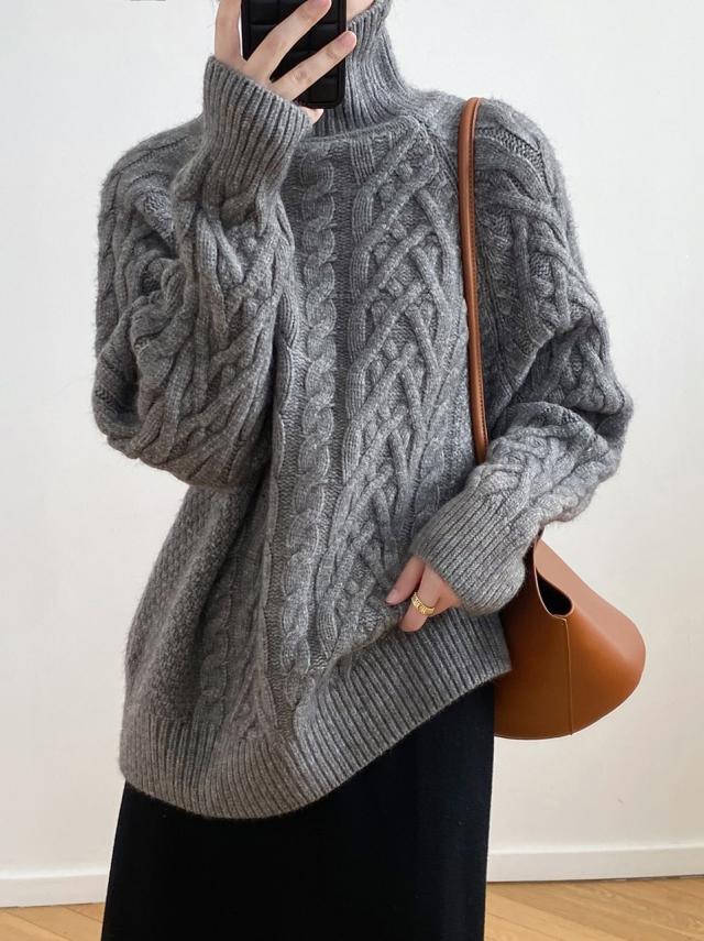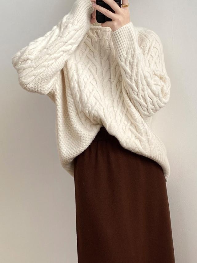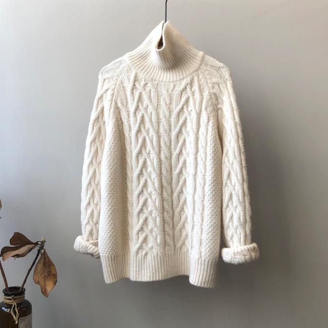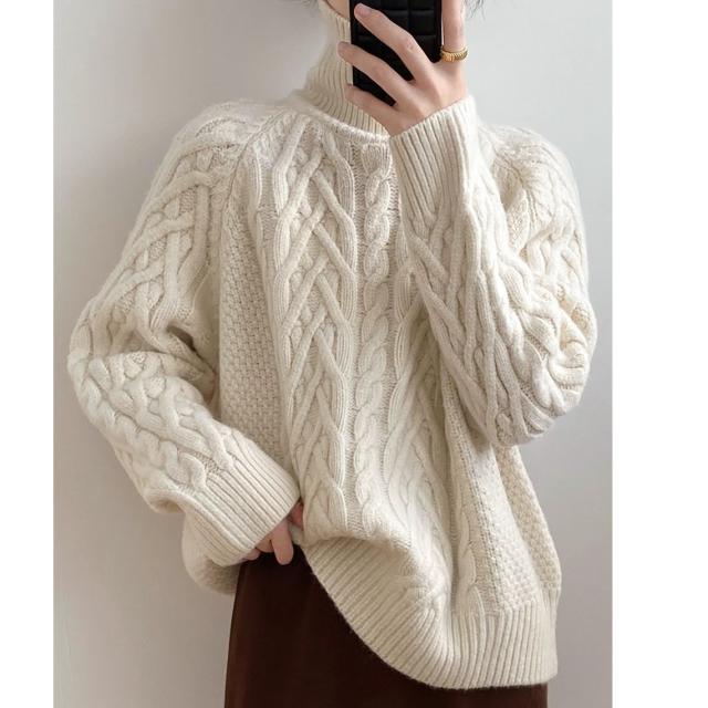 トップス レディース セーター ニット タートルネック ケーブルニット 長袖 ラグランスリーブ もこもこ モコモコ ふわふわ かわいい 大人可愛い シンプル カジュアル おしゃれ お洒落 かっこいい 大人女子 こなれ感 ラフ メンズライク クール 抜け感 フリーサイズ ワンサイズ