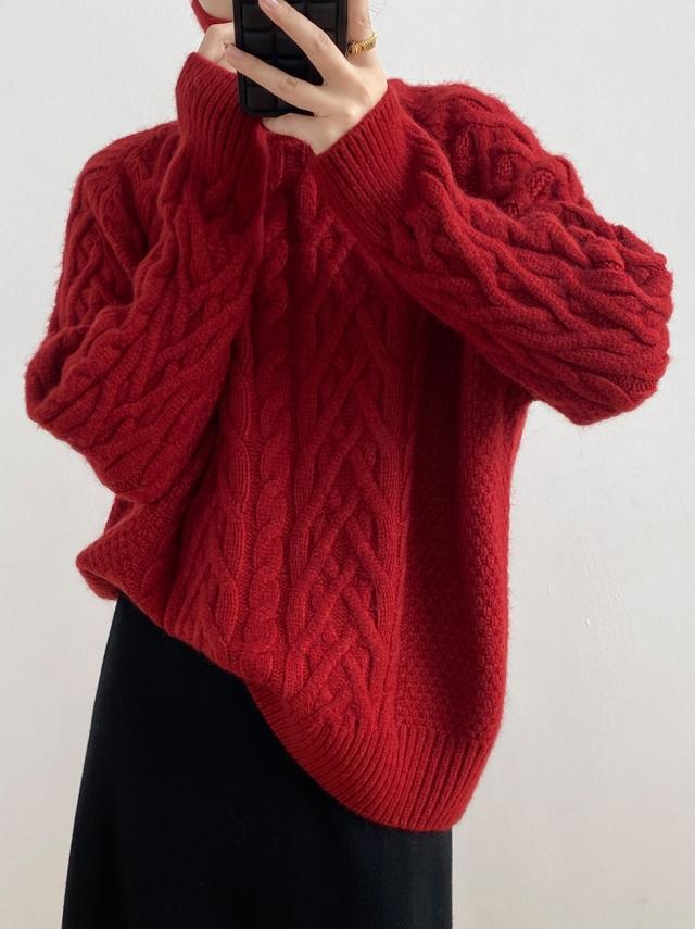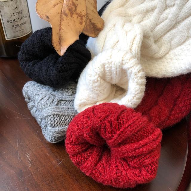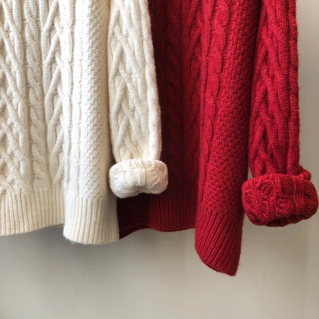 ベーシックカラーとレッドカラーのざっくり厚手ニットで