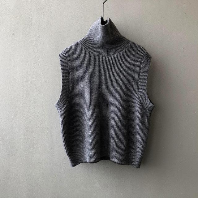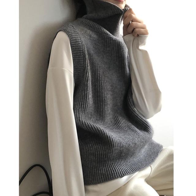 トップス レディース ノースリーブセーター ニットベスト タートルネック 袖なし リブニット プルオーバー 大人可愛い きれいめ シンプル カジュアル 大人 上品 おしゃれ お洒落 かっこいい 大人女子 こなれ感 ラフ 抜け感 存在感 カラバリ ワンサイズ フリーサイズ グレー
