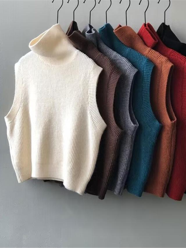 トップス レディース ノースリーブセーター ニットベスト タートルネック 袖なし リブニット プルオーバー 大人可愛い きれいめ シンプル カジュアル 大人 上品 おしゃれ お洒落 かっこいい 大人女子 こなれ感 ラフ 抜け感 存在感 カラバリ ワンサイズ フリーサイズ グレー 灰色 キャラメル コーヒー 茶色 黒 ブラック アイボリー オフホワイト 白 レッド 赤 ブルーグリーン 青緑 無地 春 秋 冬 男女兼用 オフィス ビジネス OL 通勤 学生 通学 お出かけ 旅行 体型カバー 重ね着 レイヤード