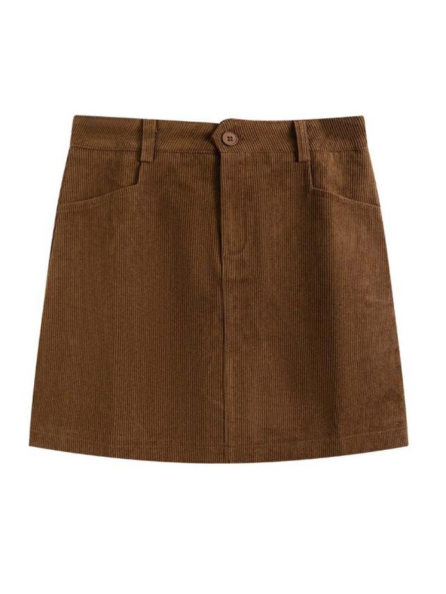 スカート ミニスカート コーデュロイスカート Aライン フレア ボタン ポケット かわいい きれいめ シンプル カジュアル おしゃれ お洒落 かっこいい こなれ感 ラフ キュート ガーリー 存在感 抜け感 S M L 黒 ブラック 茶色 ブラウン 春 秋 冬 10代 20代 30代 学生 通学