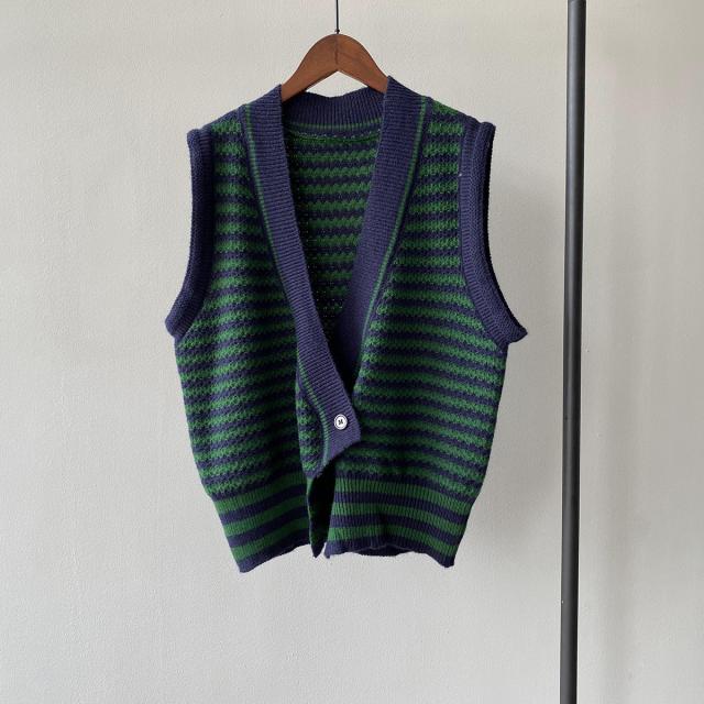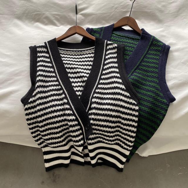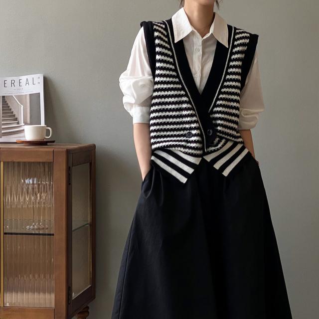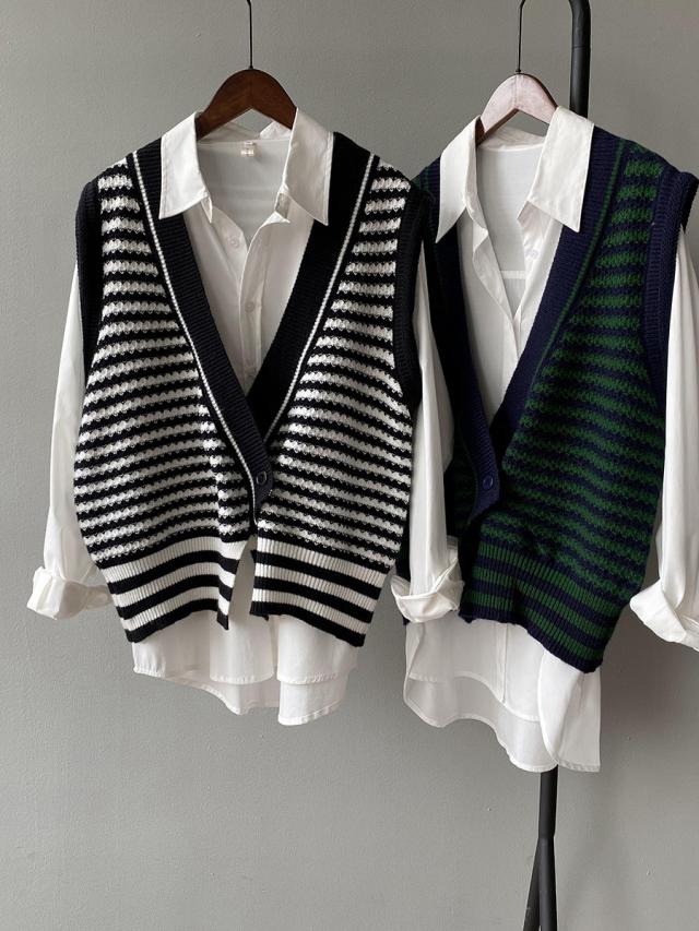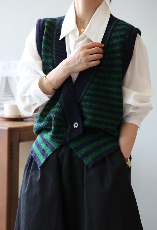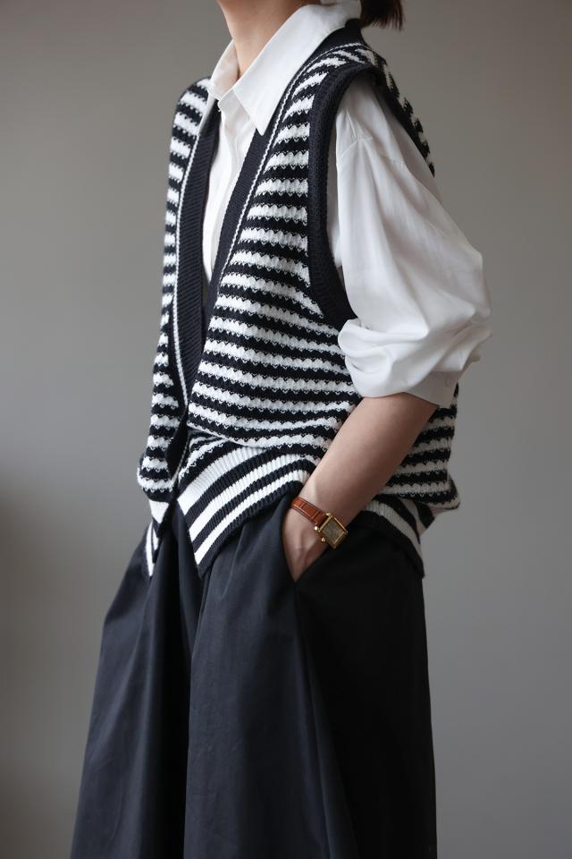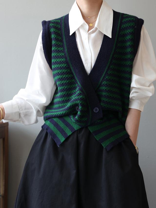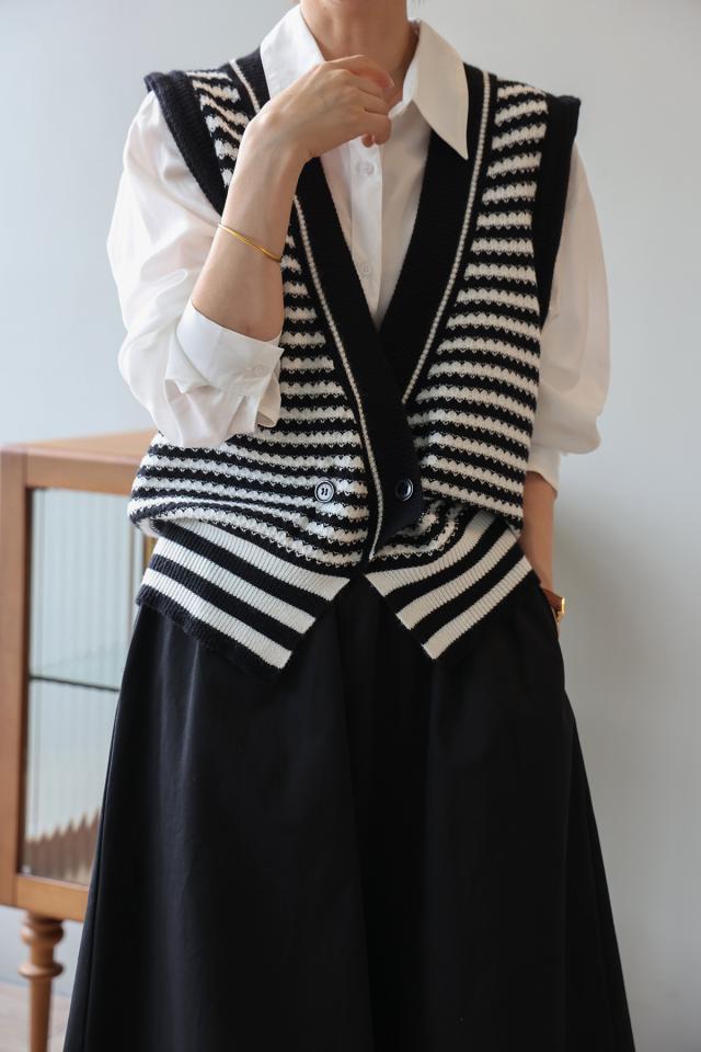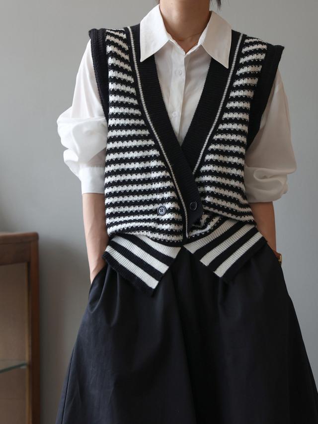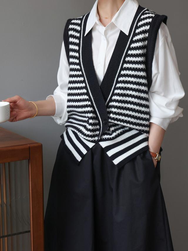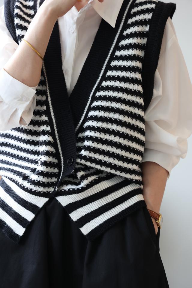 トップス ベスト ノースリーブセーター ニット レディース 袖なし Vネック ボタン ダブル ボーダー ウエストマーク 大人可愛い きれいめ シンプル カジュアル 大人 上品 おしゃれ お洒落 かっこいい 大人女子 こなれ感 クール 個性的 存在感 抜け感 フリーサイズ ワンサイズ 春 秋 冬 10代 20代 30代 40代 50代 60代 オフィス ビジネス OL 通勤 学生 通学 お出かけ 女子会 旅行 定番 モテ 体型カバー 着回し 普段使い 重ね着 韓国 オルチャン 楽ちん
