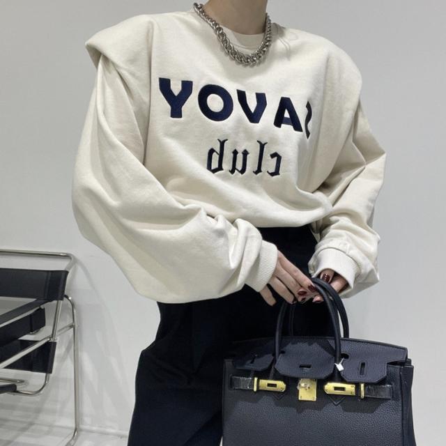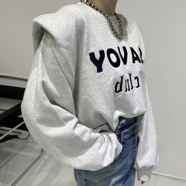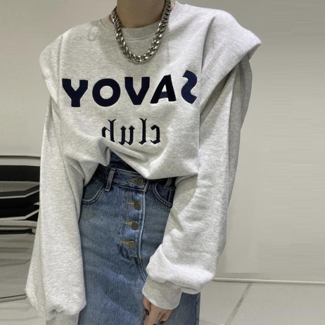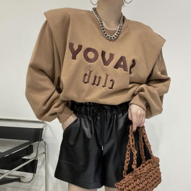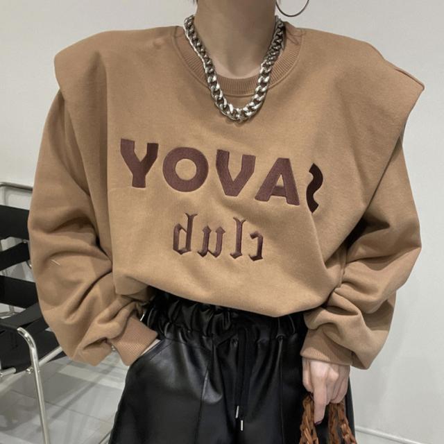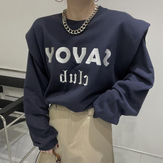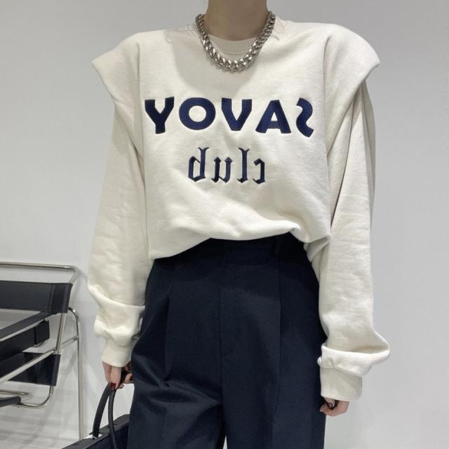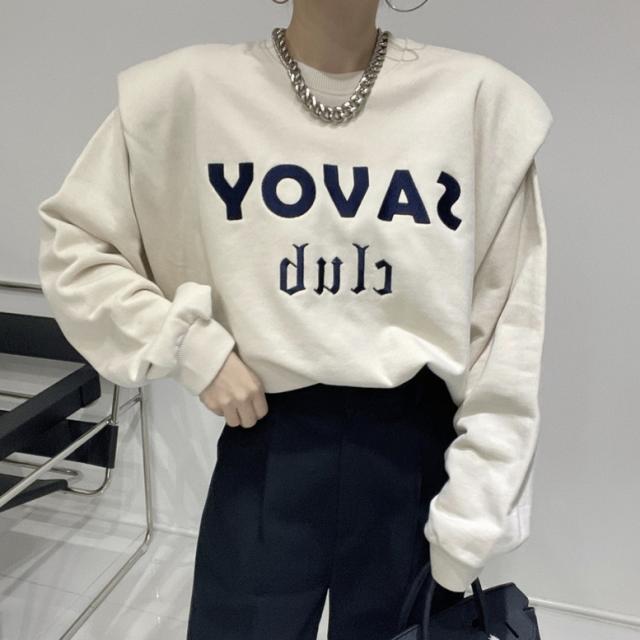 ロゴ入りパワショルスウェットプルオーバー トップス レディース スウェット プルオーバー パワーショルダー ロゴ入り トレーナー 長袖 袖コンシャス クルーネック バルーンスリーブ 茶色 紺 灰色 ブラウン ネイビー ベージュ グレー 大人可愛い きれいめ 上品 エレガント ガーリー マニッシュ ルーズ 春 夏 秋 冬 二次会 オフィス OL 通勤 学生 通学 お出かけ パーティー イベント 休日 アウトドア 体型カバー オーバーサイズ ゆったり くすみカラー ベイクドカラー アースカラー
