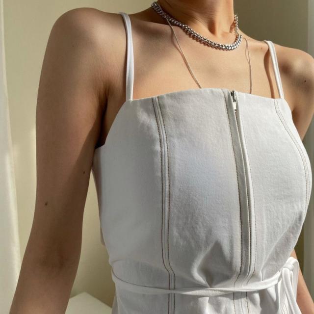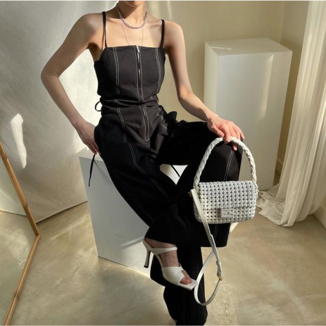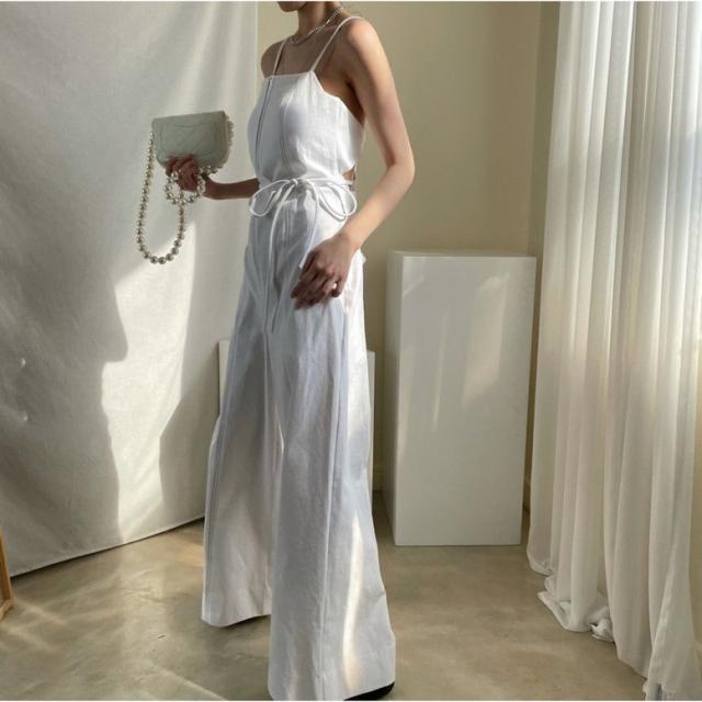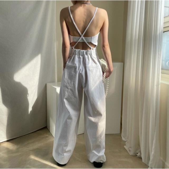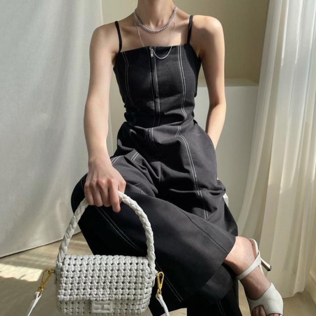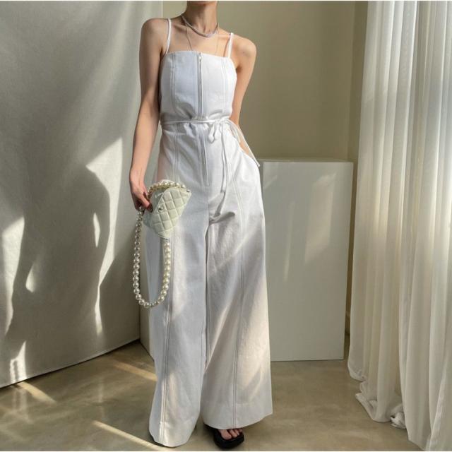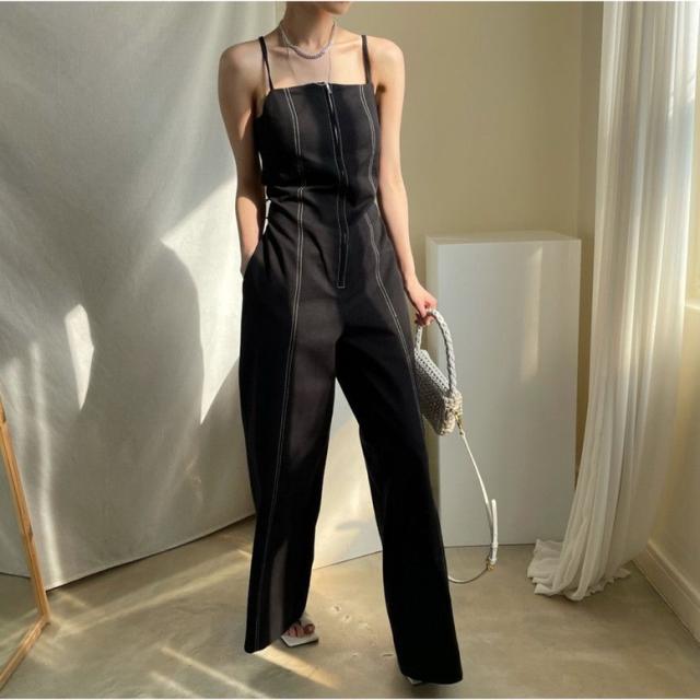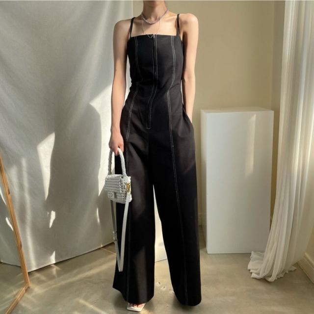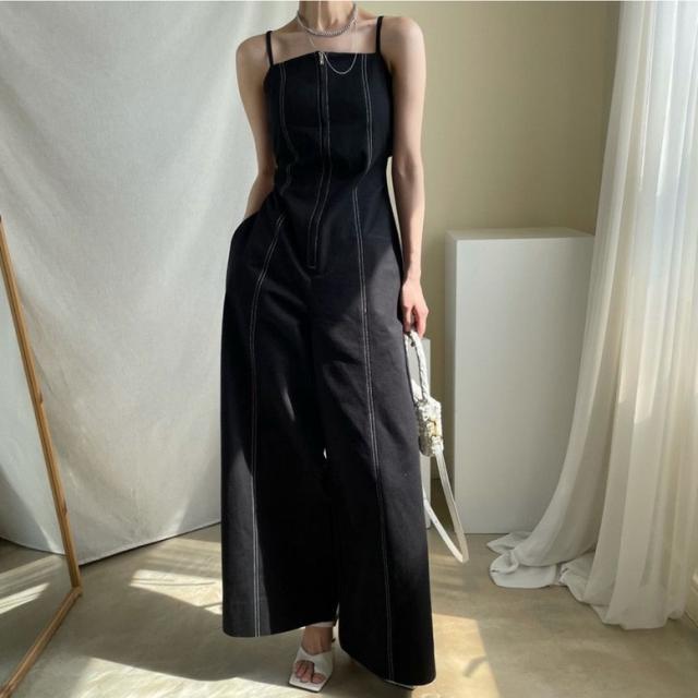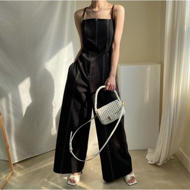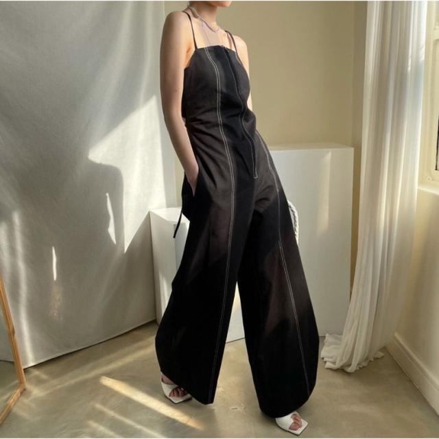オールインワン ステッチラインキャミソールオールインワンパンツ レディース ジャンプスーツ オーバーオール ジッパー ダブルポケット ベアトップ パンツオールインワン サロペット ワイドパンツ サスペンダー バッククロス ハイウエスト ロンパース つなぎ ノースリーブ 黒 白 ブラック ホワイト 大人可愛い きれいめ 上品 エレガント マニッシュ ルーズ 春 夏 秋 冬 体型カバー 脚長 トレンド ゆったり 女子会 オフィス 通勤 通学 デート お出かけ パーティー インスタ映え