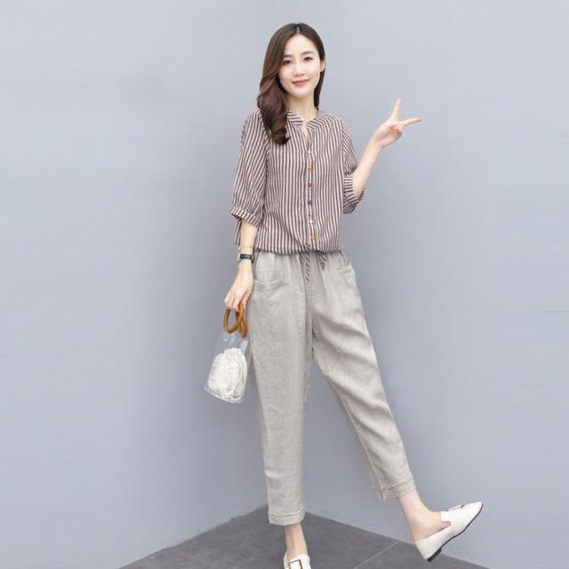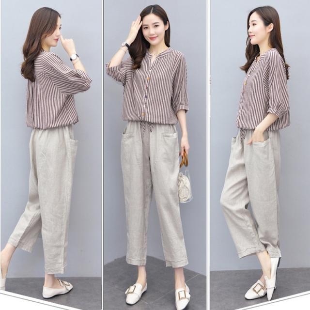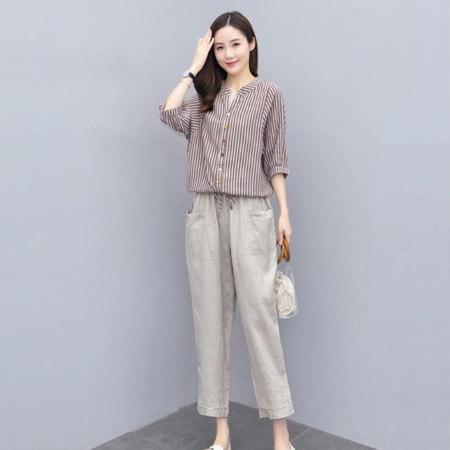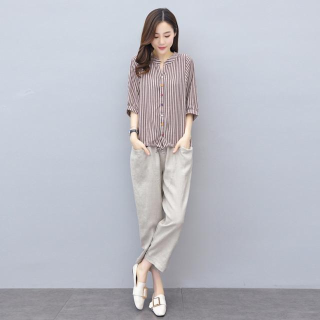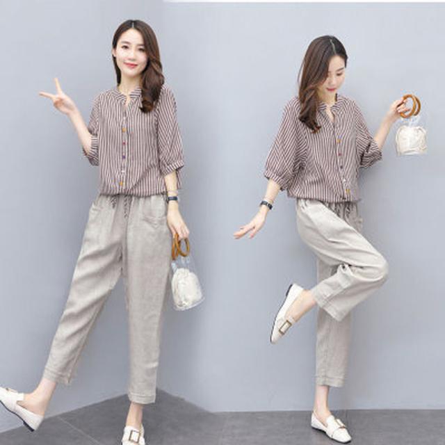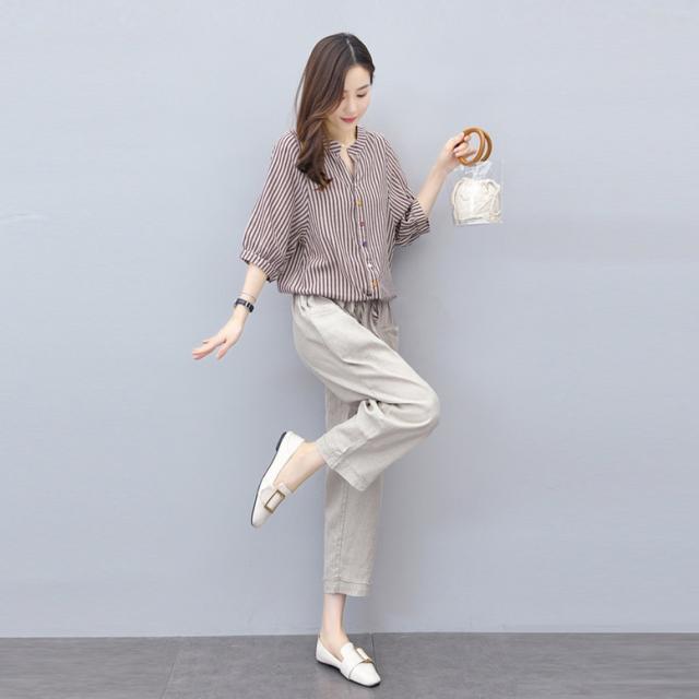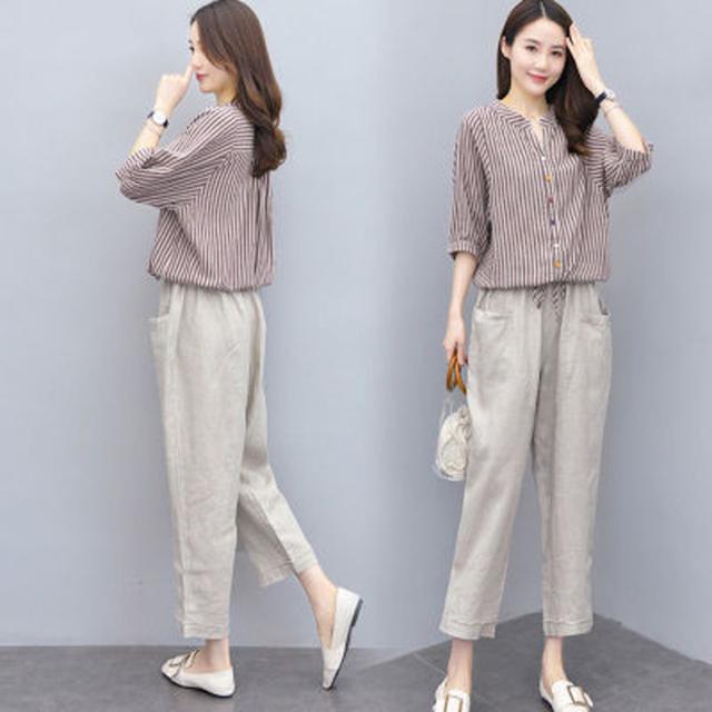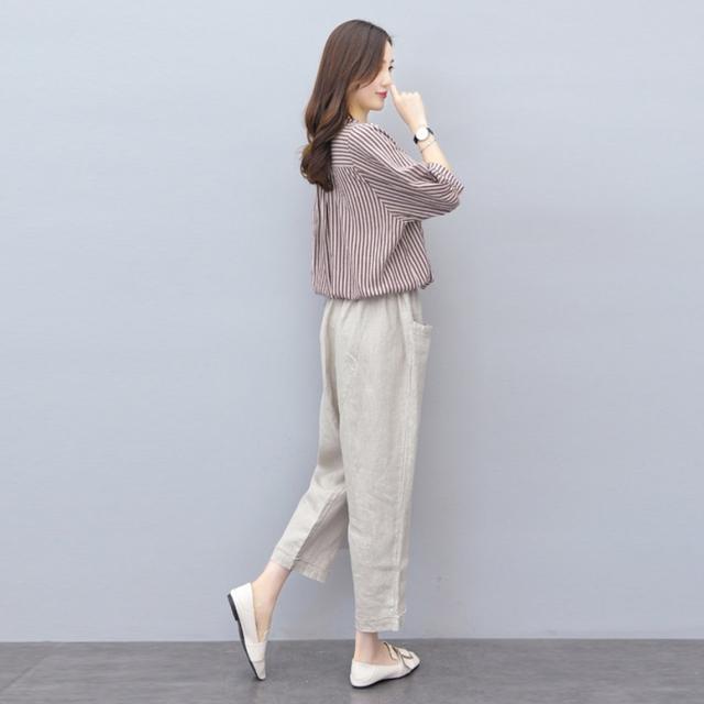 ストライプスキッパー7分袖シャツ トップス レディース シャツ ストライプ柄 ブラウス スキッパー 7分袖 コットンシャツ リネンシャツ ナチュラル 茶色 ココアブラウン 大人可愛い きれいめ 上品 エレガント フォーマル ガーリー マニッシュ ルーズ キュート レトロ 春 夏 秋