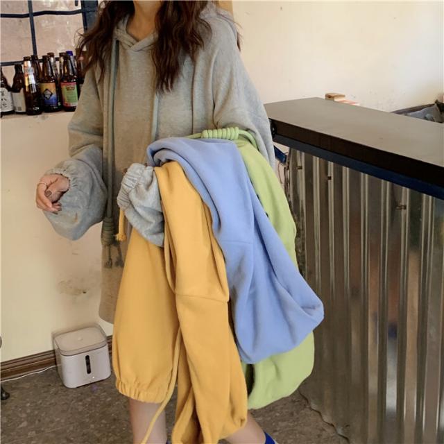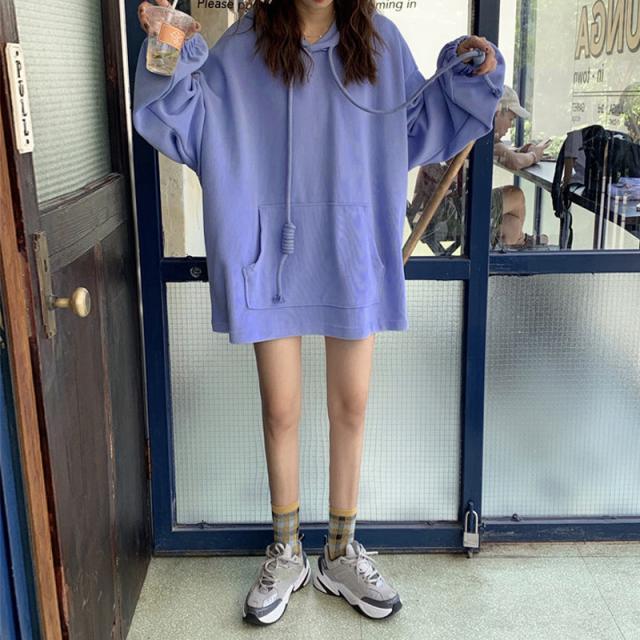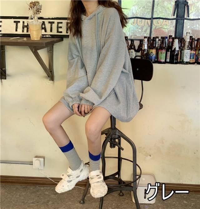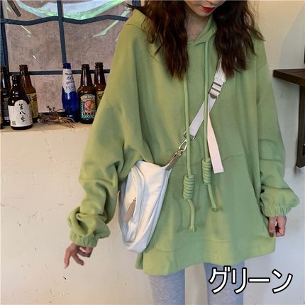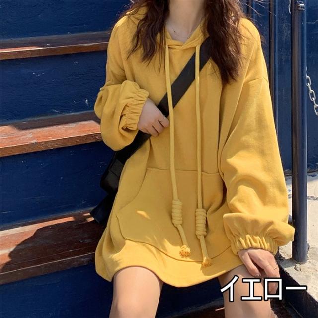 トップス パーカー 4色 スウェット オーバーサイズ フード付き 長袖 レディース ゆったり 大きめ ワイド シンプル カジュアル ラフ 無地 パープル ブルー イエロー 黄色 緑 グリーン グレー 灰色 ルーズ ゆる リラックス 部屋着 ルームウェア 萌え袖 体型カバー 着痩せ 10代