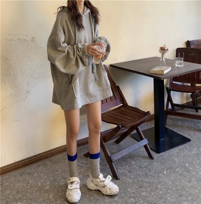 膝上まであるロング丈は、ワンピース風に着てもかわいい!