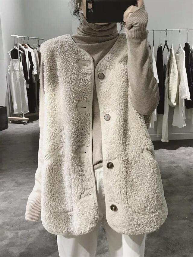 アウター ベスト 上着 袖なし ラウンドネック ワイド もこもこ モコモコ ふわふわ ポケット 前開き ポリエステル かわいい 大人可愛い シンプル カジュアル おしゃれ 大人女子 こなれ感 ラフ ルーズ 主役級 存在感 抜け感 無地 秋 冬 10代 20代 30代 40代 50代 60代 レディース 女性用 デート お出かけ 公園デビュー 女子会 休日 アウトドア リゾート 旅行 着回し 普段使い 重ね着 オルチャン ファッション 防寒 体系カバー M L XL オフホワイト カーキ ブラウン ベージュ