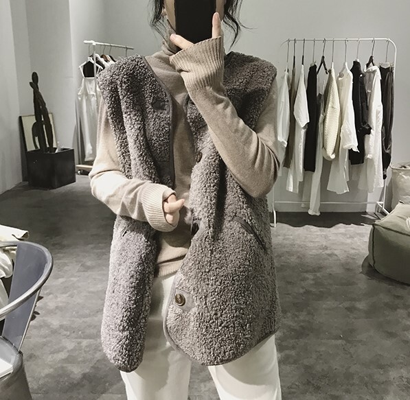 アウター ベスト 上着 袖なし ラウンドネック ワイド もこもこ モコモコ ふわふわ ポケット 前開き ポリエステル かわいい 大人可愛い シンプル カジュアル おしゃれ 大人女子 こなれ感 ラフ ルーズ 主役級 存在感 抜け感 無地 秋 冬 10代 20代 30代 40代 50代 60代