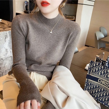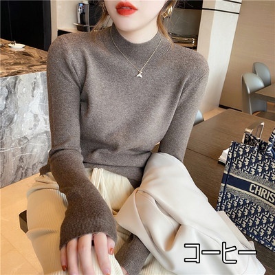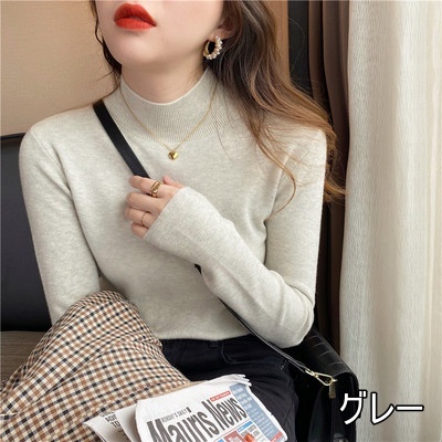 トップス ニット 5色 ハイネック ニットソー 長袖 レディース タイト スリム 細身 シンプル カジュアル ラフ 無地 ホワイト 白 黒 ブラック ベージュ グレー 灰色 イエロー マスタード くすみカラー 休日 お出かけ ショッピング 公園 体型カバー 着痩せ 細見え 20代 30代 40代