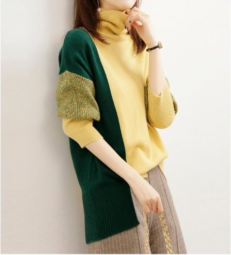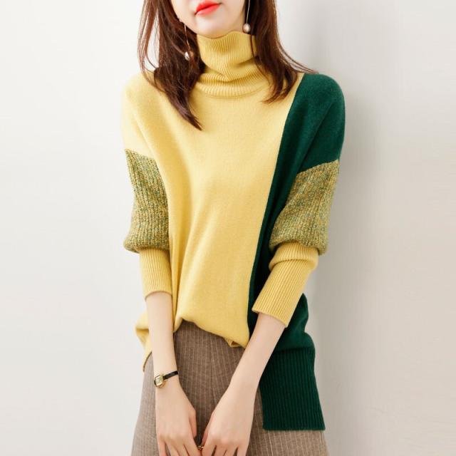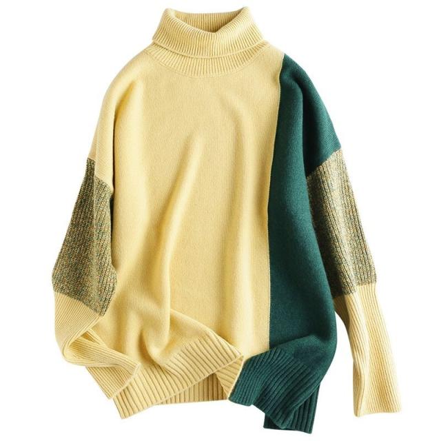 トップス セーター ニット 袖あり 長袖 タートルネック ブロッキングニット 大人可愛い きれいめ カジュアル 大人 上品 おしゃれ お洒落 かっこいい レトロ 大人女子 こなれ感 ラフ クール ルーズ 個性的 存在感 抜け感 S M L アイボリー 紺 ネイビー ブラウン 茶色 イエロー 黄色 グリーン 緑 マルチカラー 冬 秋 春 20代 30代 40代 50代 60代 ママ 学生 通学 お出かけ 普段使い 休日 アウトドア イベント 旅行 プレゼント ギフト 楽ちん 定番 防寒 あったか 暖かい