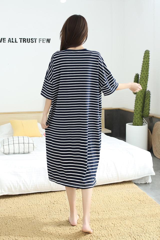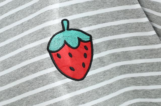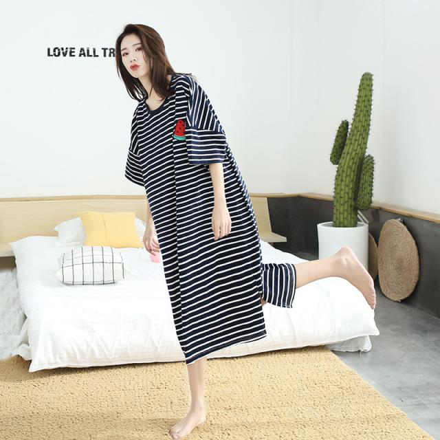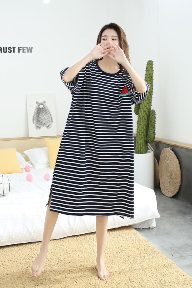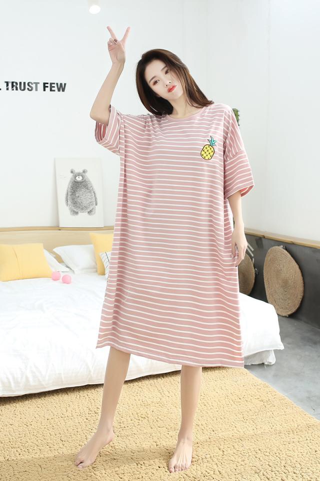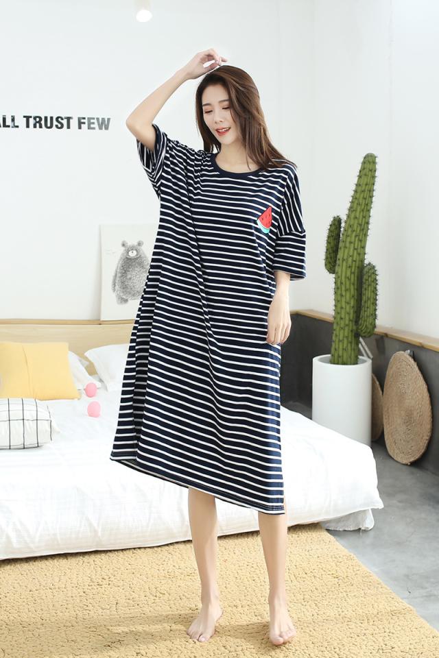 パジャマ 3色 ワンピース ボーダー 刺繍 フルーツ ネグリジェ 半袖 レディース ラウンドネック ゆったり 大きめ 大きいサイズ XL 2XL 3XL かわいい 大人可愛い お洒落 オシャレ 韓国 トレンド 流行 春 夏 10代 20代 30代 40代 ルームウェア 部屋着 寝巻 旅行 お泊まり 映え