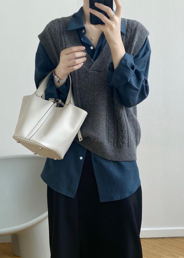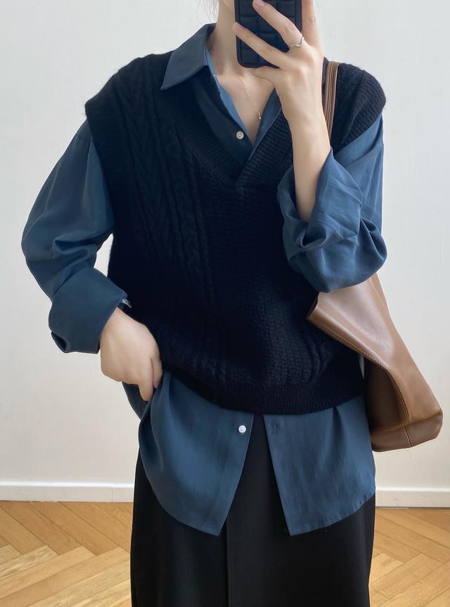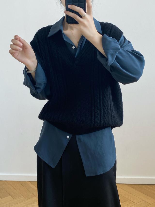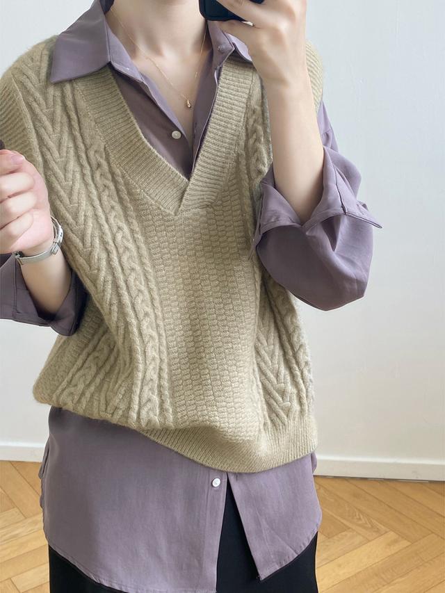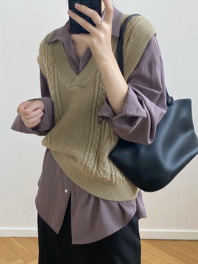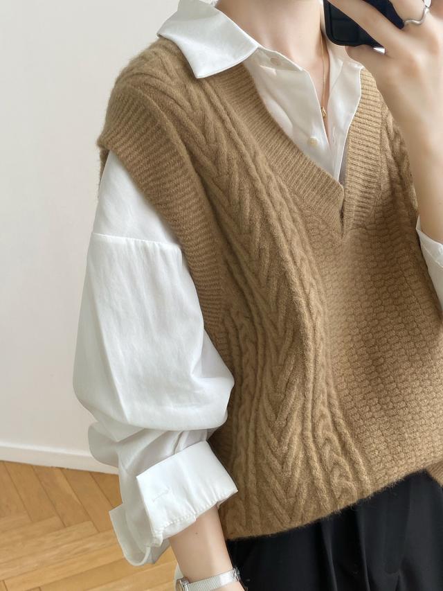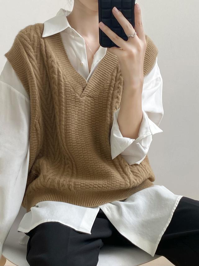 秋 ベスト セーター トップス プルオーバー ベスト 上着 ショート丈 袖なし ノースリーブ Vネック オフショルダー 襟なし レギュラー ヘッジング ルーズ 編み込み 伸縮性 ルーズウエスト 薄手 普通生地(秋冬用) 大人可愛い シンプル カジュアル おしゃれ レトロ こなれ感