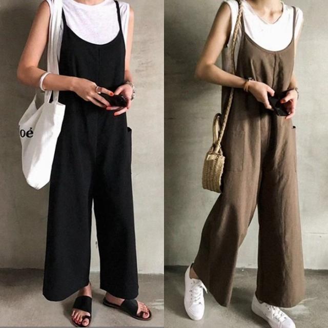 オールインワン レディース サロペット オーバーオール ジャンプスーツ ブラック 黒 ブラウン 茶色 大人カラー くすみカラー 秋カラー 無地 春 夏 秋 ワンサイズ フリーサイズ ノースリーブ ルーズ ゆったり ゆる 体型カバー 着やせ ママ フェミニン カジュアル きれいめ きれカジ ナチュラル 大人 大人可愛い 存在感 主役級 旅行 ロング丈 ロング 学生 通学 休日 お出かけ デート 定番 着回し 万能 王道 シンプル ベーシック レイヤード 重ね着 韓国 オルチャン さわやか ラフ リラックス