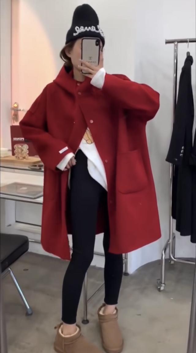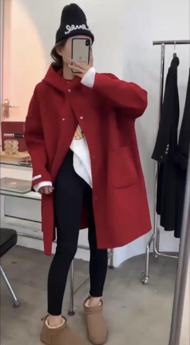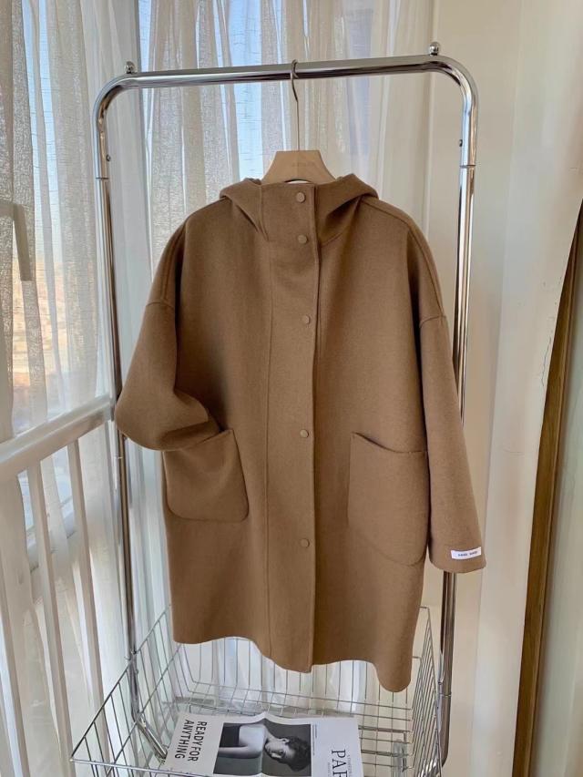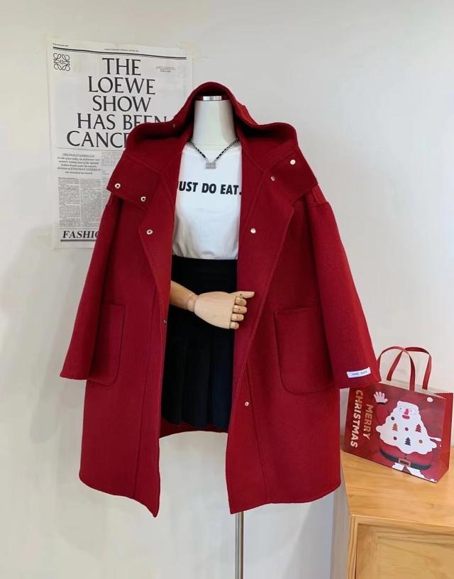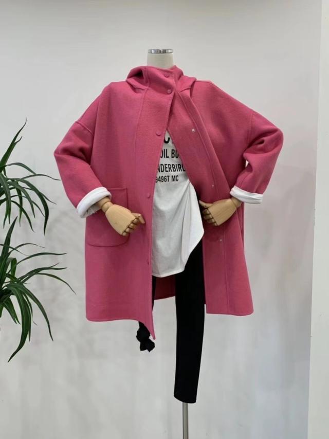 アウター コート 上着 膝上 袖あり 長袖 ドロップショルダー ワイド フード付き ポケット 前開き ウール かわいい 大人可愛い きれいめ シンプル カジュアル おしゃれ お洒落 大人女子 こなれ感 ラフ ルーズ 主役級 存在感 抜け感 無地 秋 冬 10代 20代 30代 40代 50代 60代 レディース 女性用 デート お出かけ 公園デビュー 女子会 休日 旅行 着回し 普段使い 重ね着 韓国系 オルチャン ファッション スタイル 体系カバー 定番 S M ベージュ ピンク レッド ブラック