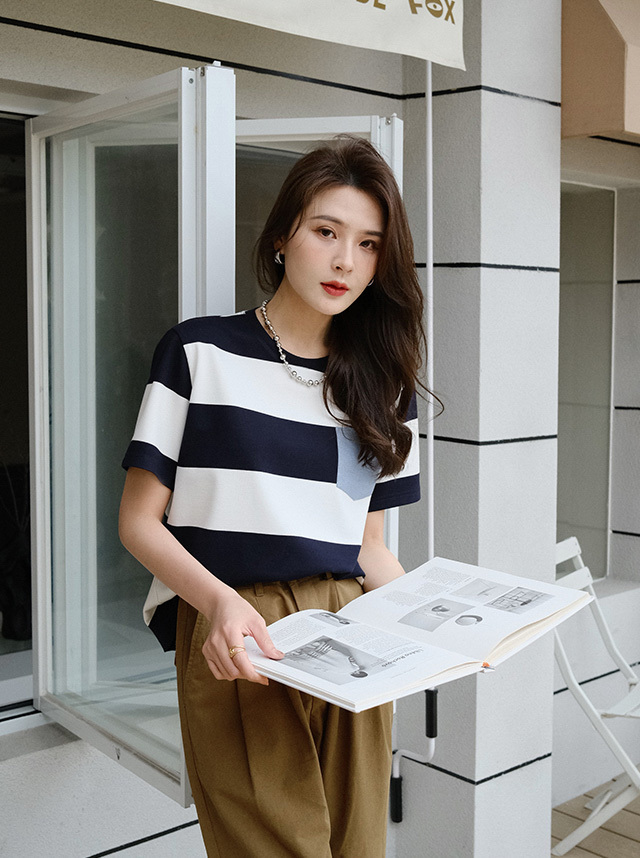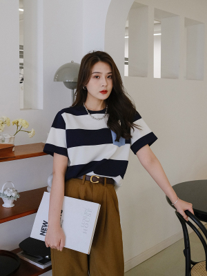 夏 ストライプ Tシャツ スカート ワンピース Tシャツ シャツ ショート丈 袖あり 半袖 ラウンドネック 襟なし スリム ストレート レギュラー ふわふわ ルーズウエスト ポリエステル 薄手 異素材MIX かわいい 大人可愛い シンプル かっこいい レトロ こなれ感 キュート モダン ストライプ 秋 20代 30代 レディース 女性用 ママ オフィス ビジネス OL 通勤 お出かけ お泊まり アウトドア レストラン 普段使い スタイル 楽ちん インスタ映え S M L XL 2X 画像1