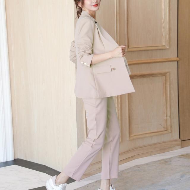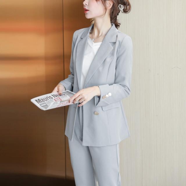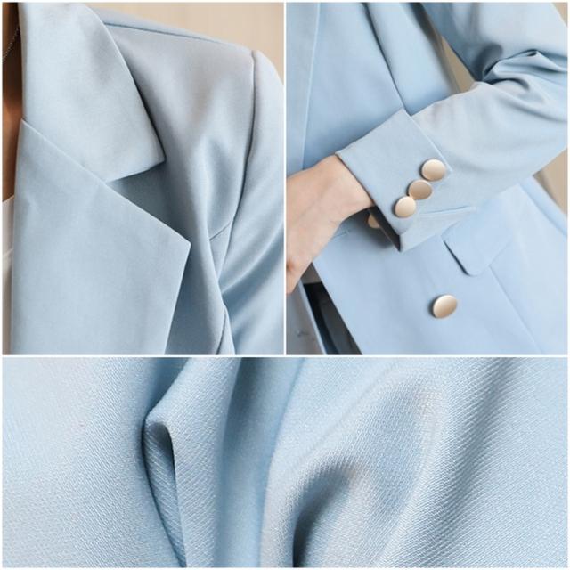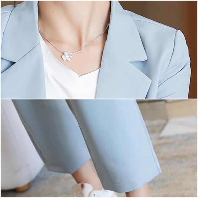 ダブルフェイスパンツスーツ セットアップ レディース スーツ 3点セット スリーピース 上下セット テーラードジャケット クロップドパンツ パンツスーツ 長袖ジャケット 九分パンツ スリム 黒 灰色 水色 ピンク ブラック グレー ベージュ ブルー 大人可愛い きれいめ 上品