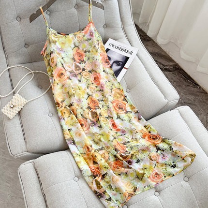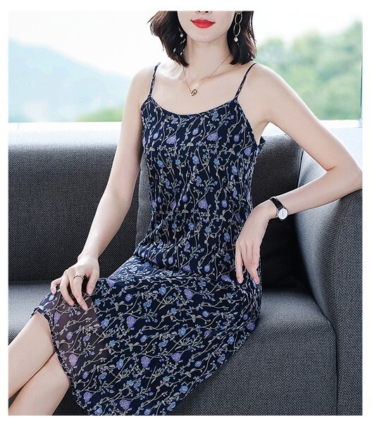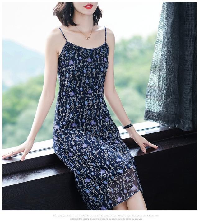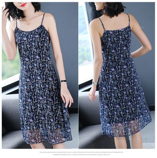 ワンピース キャミソール フレアワンピース 膝丈 ひざ丈 膝下 袖なし ノースリーブ ラウンドネック ストレート Iライン シフォン 透け感 シースルー 大人可愛い きれいめ おしゃれ レトロ アジアン エスニック エキゾチック こなれ感 ラフ 個性的 モダン 花柄 小花柄