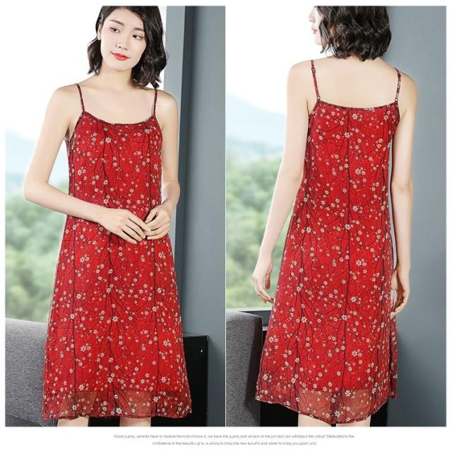 ワンピース キャミソール フレアワンピース 膝丈 ひざ丈 膝下 袖なし ノースリーブ ラウンドネック ストレート Iライン シフォン 透け感 シースルー 大人可愛い きれいめ おしゃれ レトロ アジアン エスニック エキゾチック こなれ感 ラフ 個性的 モダン 花柄 小花柄 レディース 着回し 重ね着 S M L XL 2XL 3XL 4XL 小さいサイズ 大きいサイズ ゆったり ゆる 黒 ブラック 赤 レッド 緑 グリーン 黄色 イエロー