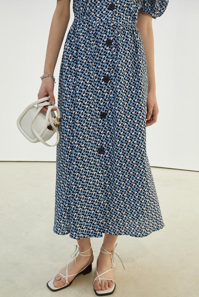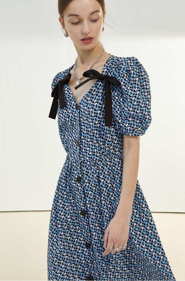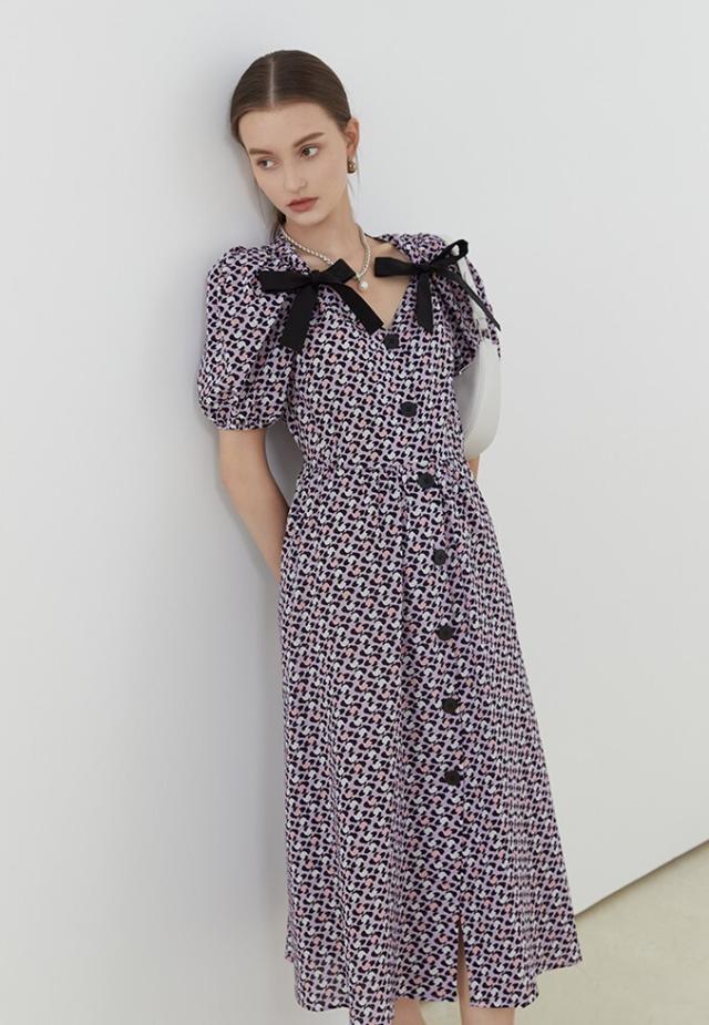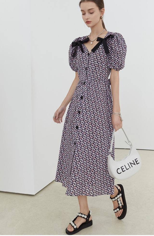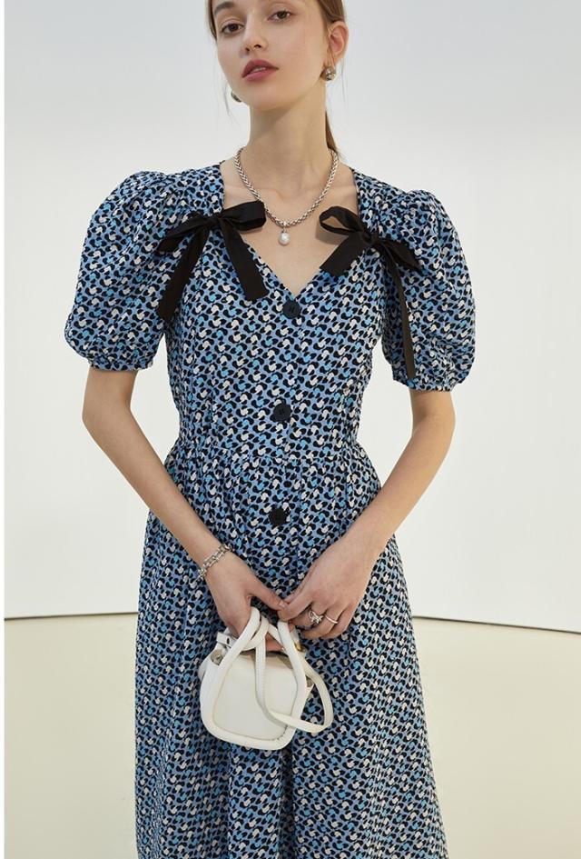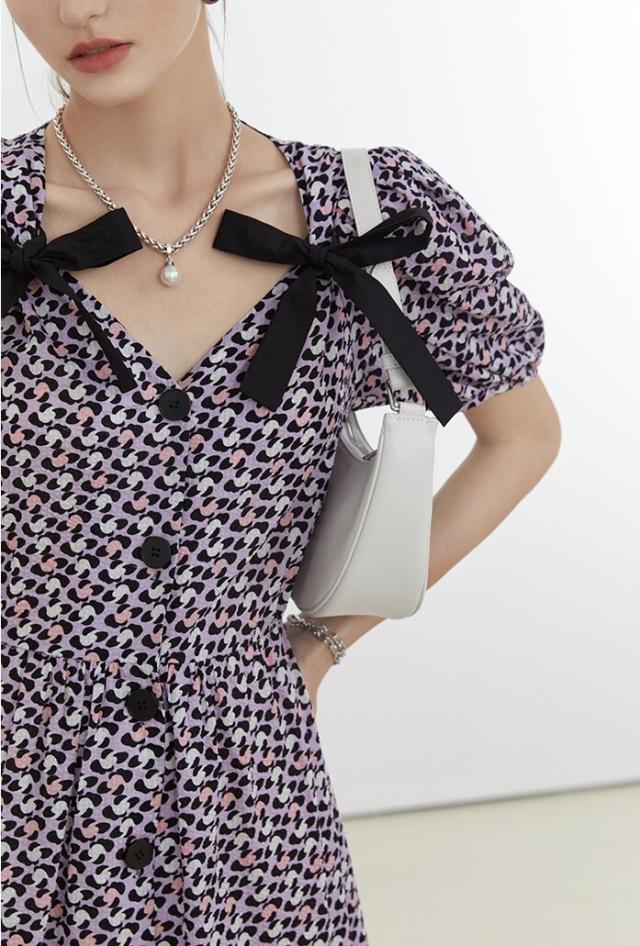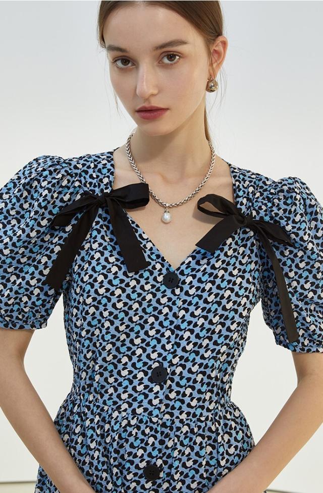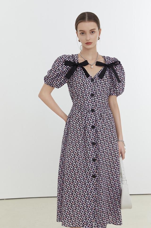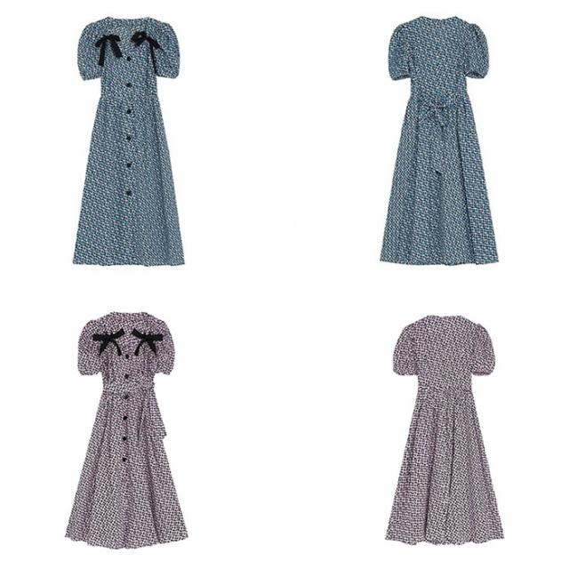 ワンピース レディース ミディワンピ 花柄ワンピ S M L ブルー 青 パープル 紫 大人カラー 花柄 フラワー フローラル リボン フロントボタン 春 夏 半袖 パフスリーブ リボン ミドル丈 ミドル ミディ丈 ミディアム 膝丈 膝下 フレア Aライン ハイウエスト 脚長 スタイルアップ 体型カバー フェミニン ナチュラル きれいめ きれカジ カジュアル ガーリー キュート モテ 大人 大人可愛い 存在感 主役級 こなれ感 ぬけ感 休日 お出かけ デート 韓国 オルチャン お呼ばれ 清潔感 上品