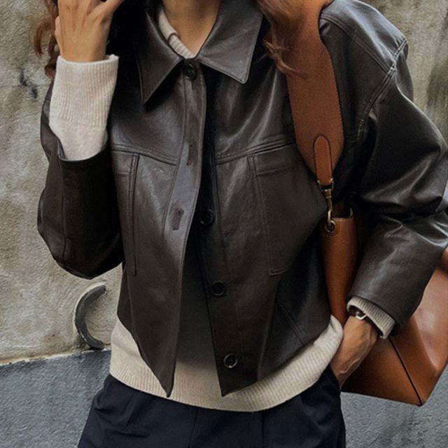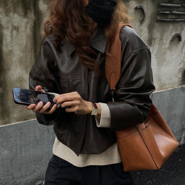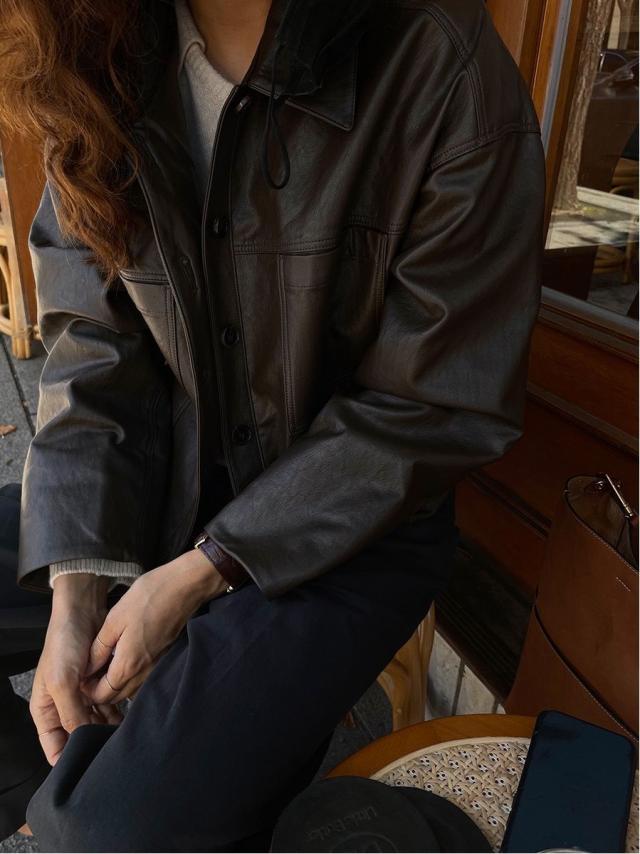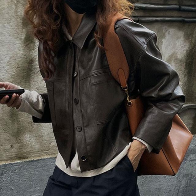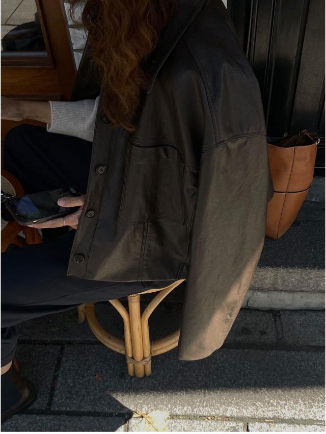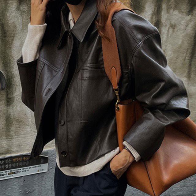 アウター レディース ジャケット 革ジャケット 革ジャン レザージャケット フェイクレザー 長袖 袖あり 襟付き ボタン ポケット シンプル カジュアル 大人 上品 おしゃれ お洒落 かっこいい 大人女子 こなれ感 ラフ メンズライク マニッシュ ルーズ クール 抜け感 存在感 ワンサイズ フリーサイズ ブラック 黒 ブラウン 茶 無地 春 秋 冬 10代 20代 30代 40代 50代 ママ 学生 通学 デート お出かけ 女子会 休日パーティー イベント 旅行 定番 着回し 重ね着 韓国 オルチャン