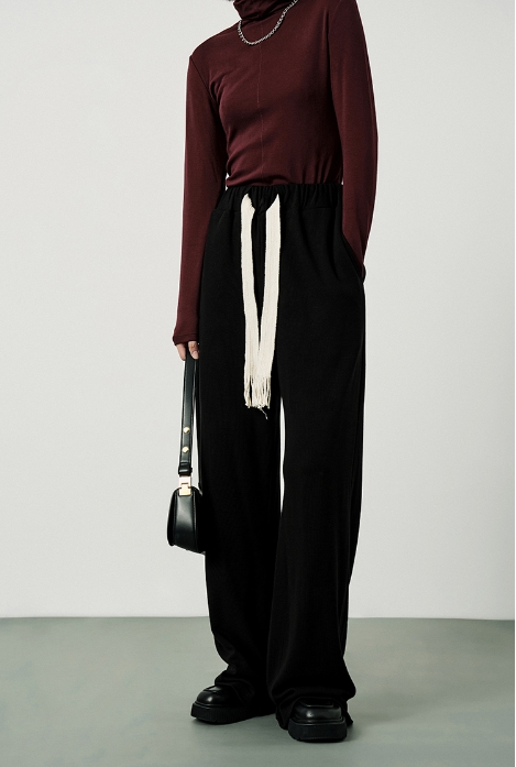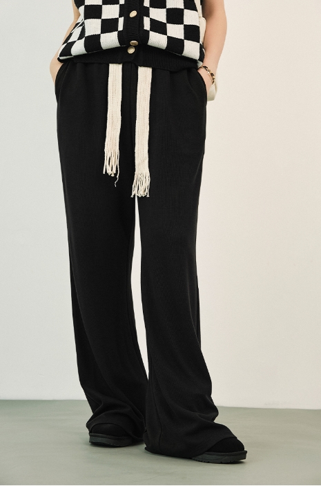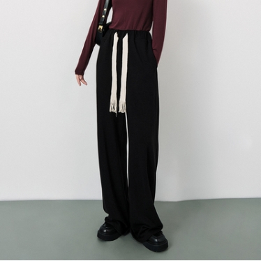 ストリートスタイル ボトムス パンツ スウェット 部屋着 ワイドパンツ ストレート ワイド スマート リボン ポケット ハイウエスト 大人可愛い シンプル カジュアル かっこいい 大人女子 こなれ感 ラフ マニッシュ スポーティー ルーズ クール ストリート 無地 オールシーズン