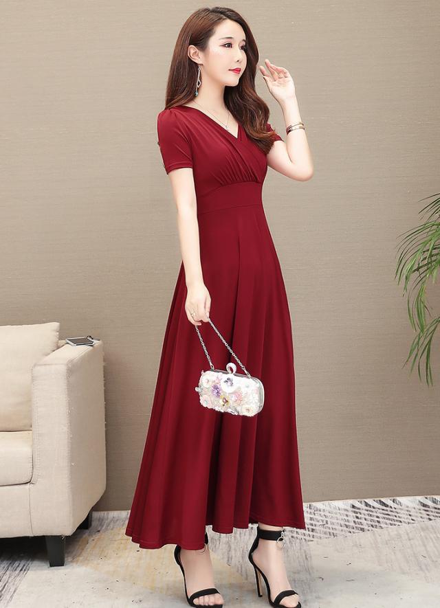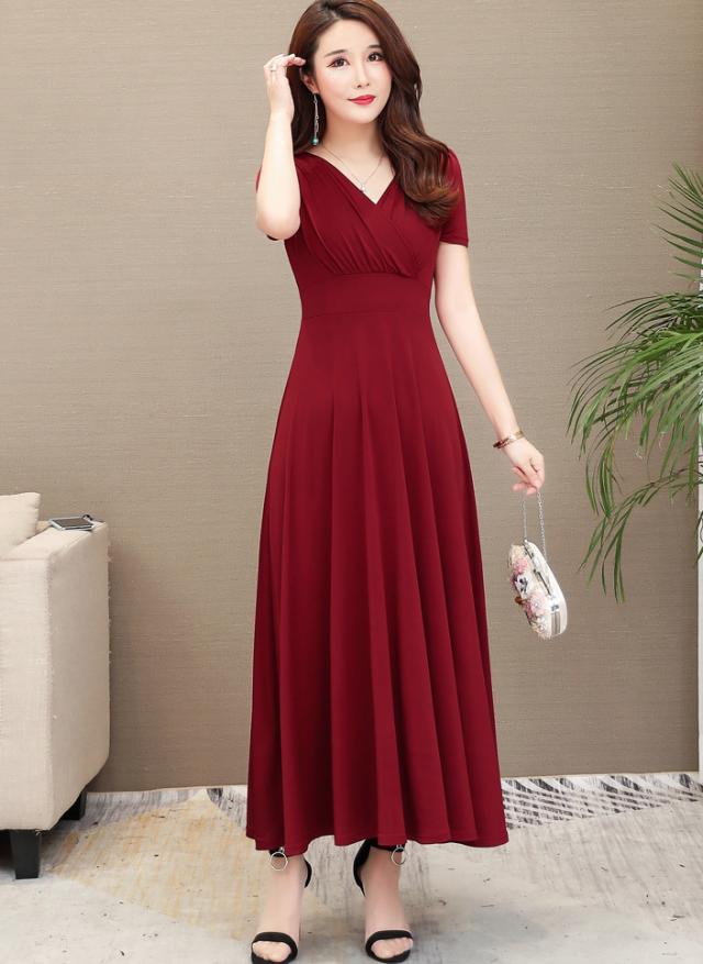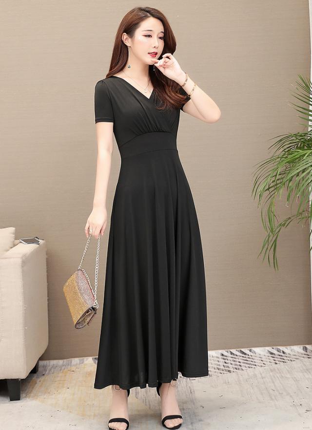 夏 スリム ロングスカート ドレス ワンピース プルオーバー ロングスカート プリーツスカート ワンピドレス 袖あり 半袖 パフスリーブ Vネック 襟なし スリム 細身 ふわふわ ハイウエスト 透け感 タイプA 薄手 異素材MIX 大人可愛い 大人 上品 お洒落 こなれ感 エレガント 無地 夏 30代 40代 レディース 女性用 ママ OL 学生 お出かけ 休日 パーティー ホテル 重ね着 スタイル 楽ちん インスタ映え M L XL 2XL 3XL ブラック クラレット ロイヤルブルー