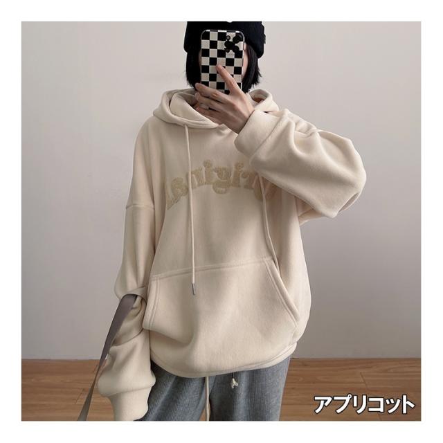 パーカー レディース トップス フード付き フーディー プルオーバー ボアパーカー ワンサイズ フリーサイズ グリーン 緑 ピンク アプリコット ブラック 黒 大人カラー くすみカラー もこもこ ふわふわ フリース ロゴ 英字 長袖 ポケット ストレート ショート丈 ミドル丈 ゆったり ゆる ルーズ ボーイッシュ メンズライク カジュアル ストリート ストカジ きれカジ シンプル ベーシック 大人 大人可愛い 定番 万能 着回し デイリー お出かけ 休日 防寒 あったか 学生 通学 韓国 オルチャン
