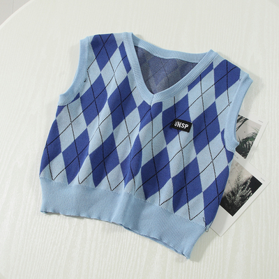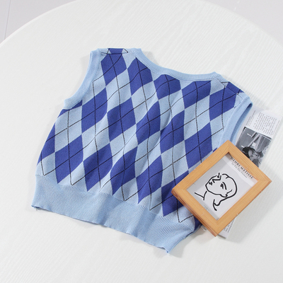 トップス ベスト ニット アーガイル レディース ショート丈 Vネック ノースリーブ オシャレ お洒落 きれいめ かわいい 大人可愛い ガーリー 10代 20代 30代 着回し 重ね着 シンプル カジュアル ラフ ジレ チョッキ ブルー 青 水色 総柄 華奢 細見え タイト スリム 春 秋 冬 抜け感 こなれ感 ショッピング レトロ アンティーク ヴィンテージ 柔らか 着心地 学生 スクール 制服 脚長 スタイルアップ チェック柄 ダイヤ シック モダン くすみカラー 新作 2022