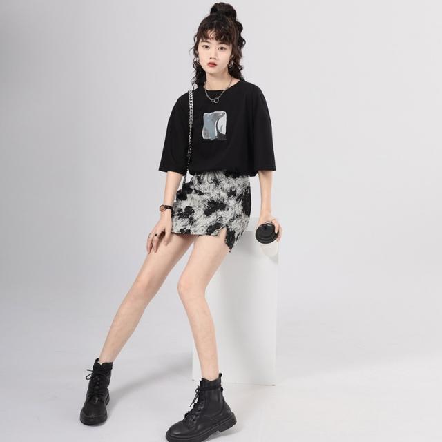 モノトーンでシックに仕上げたショート丈タイトスカート
