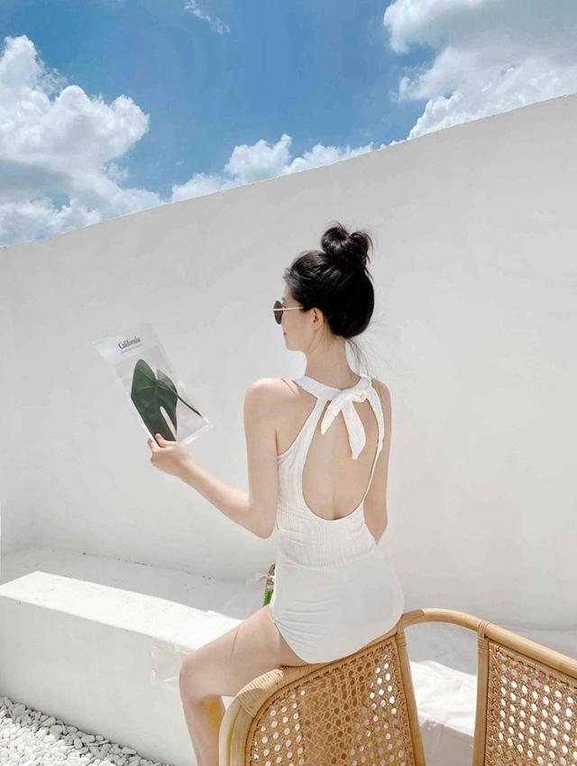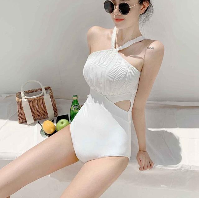 ホワイトカラーのホルターネックワンピース水着。