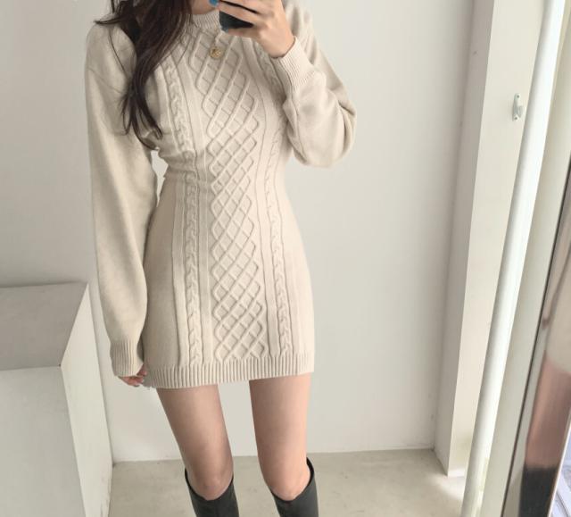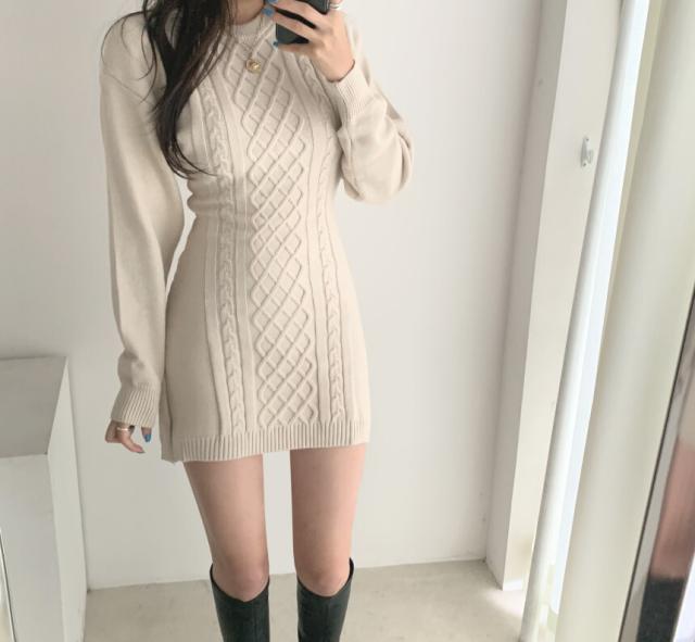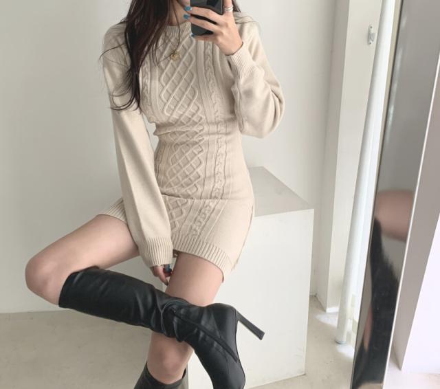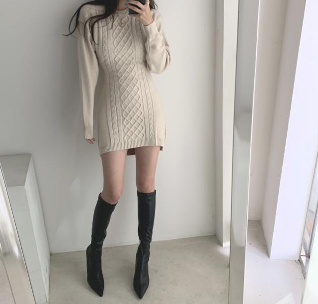 ケーブルニットのミニワンピースです。