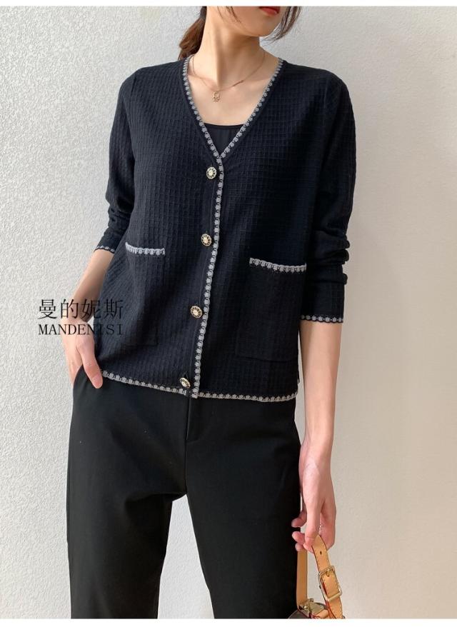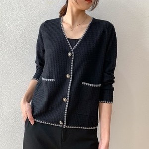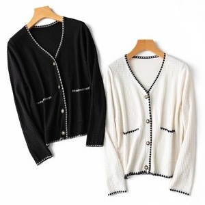 トップス カーディガン 2色 長袖 レディース バイカラー コントラスト ラインストーン ビジュー ゆったり タイト 細身 シンプル カジュアル ラフ 無地 ブラック 黒 白 ホワイト モノクロ ルーズ 休日 お出かけ 体型カバー 着痩せ 細見え 10代 20代 30代 40代 50代 60代 春 秋 冬 お洒落 オシャレ かわいい 大人可愛い 色違い Vネック こなれ感 前開き ボタン きれいめ 上品 エレガント シック モード 高級感 大きいサイズ L XL 2XL ポケット