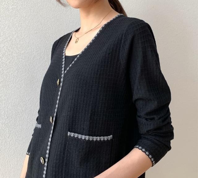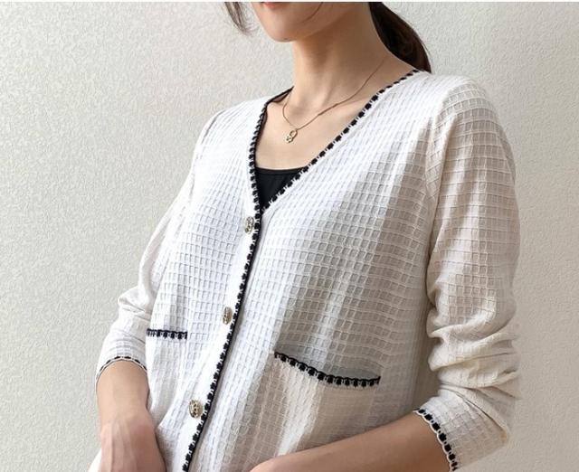 モノクロでまとめたおしゃれなカーディガンです。
