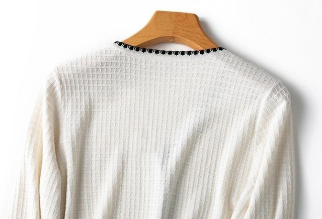 トップス カーディガン 2色 長袖 レディース バイカラー コントラスト ラインストーン ビジュー ゆったり タイト 細身 シンプル カジュアル ラフ 無地 ブラック 黒 白 ホワイト モノクロ ルーズ 休日 お出かけ 体型カバー 着痩せ 細見え 10代 20代 30代 40代 50代 60代 春 秋