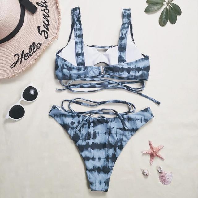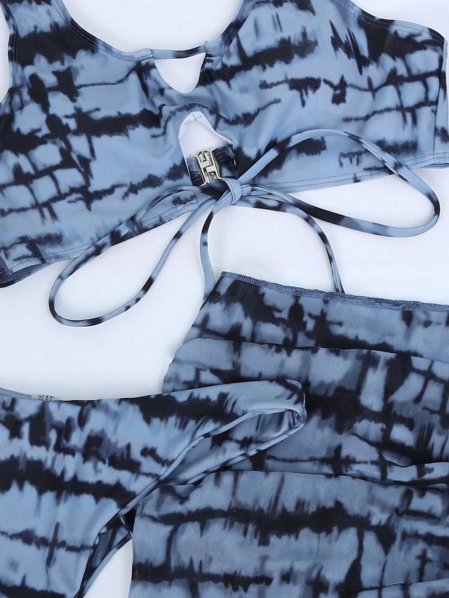 ブルーカラーのダイタイ柄ビキニ3点セット。