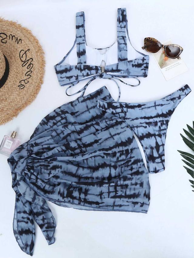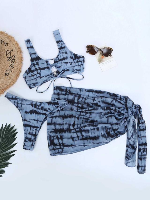 水着 スイムウエア レディース タンキニ ビキニ パレオ セパレート 3点セット フロントクロス バッククロス リボン タイダイ ハイレグ レースアップ 谷間 谷間魅せ 盛れる 胸元 リボン セクシー sexy おしゃれ お洒落 大人 大人っぽい 主役級 存在感 華やか 女っぽ 個性的 スタイリッシュ クール かっこいい エキゾチック アジアン S M L 青 ブルー 10代 20代 30代 ビーチ 海 夏 プール リゾート 旅行 美脚 脚長 スタイルアップ 美スタイル モテ 韓国 オルチャン 高見え